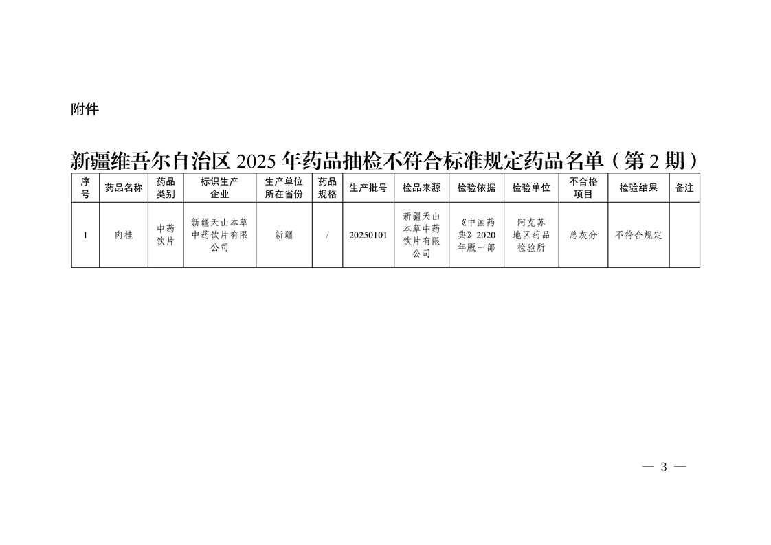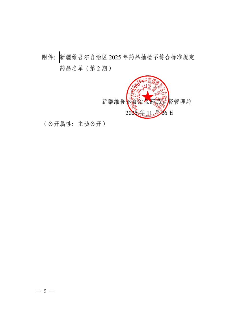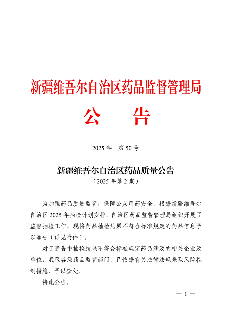 新疆维吾尔自治区药品质量公告(2025年第2期)