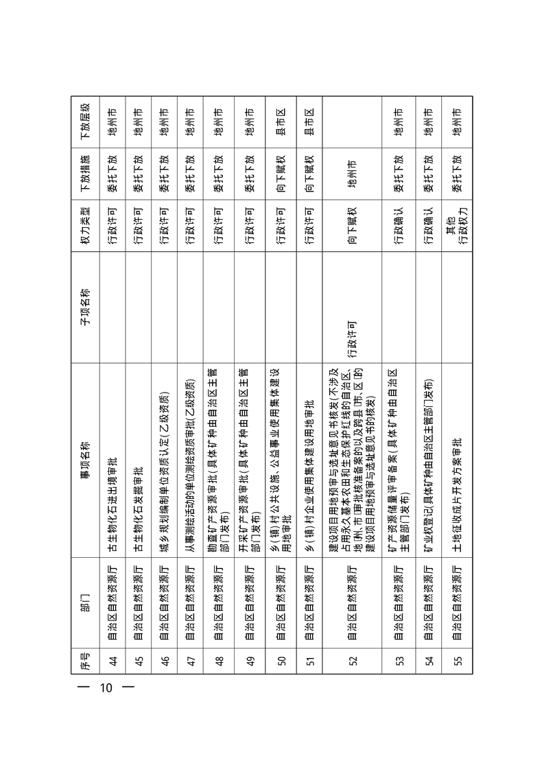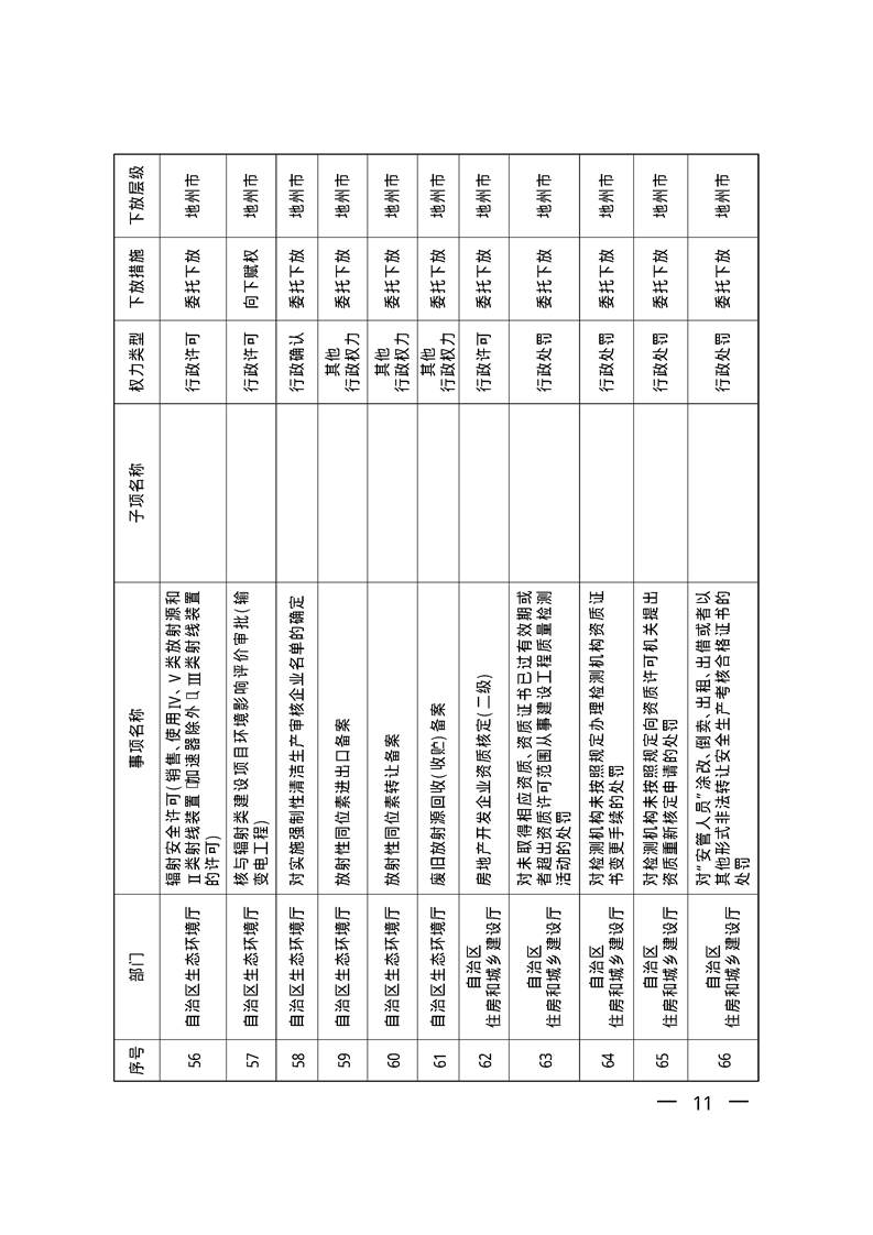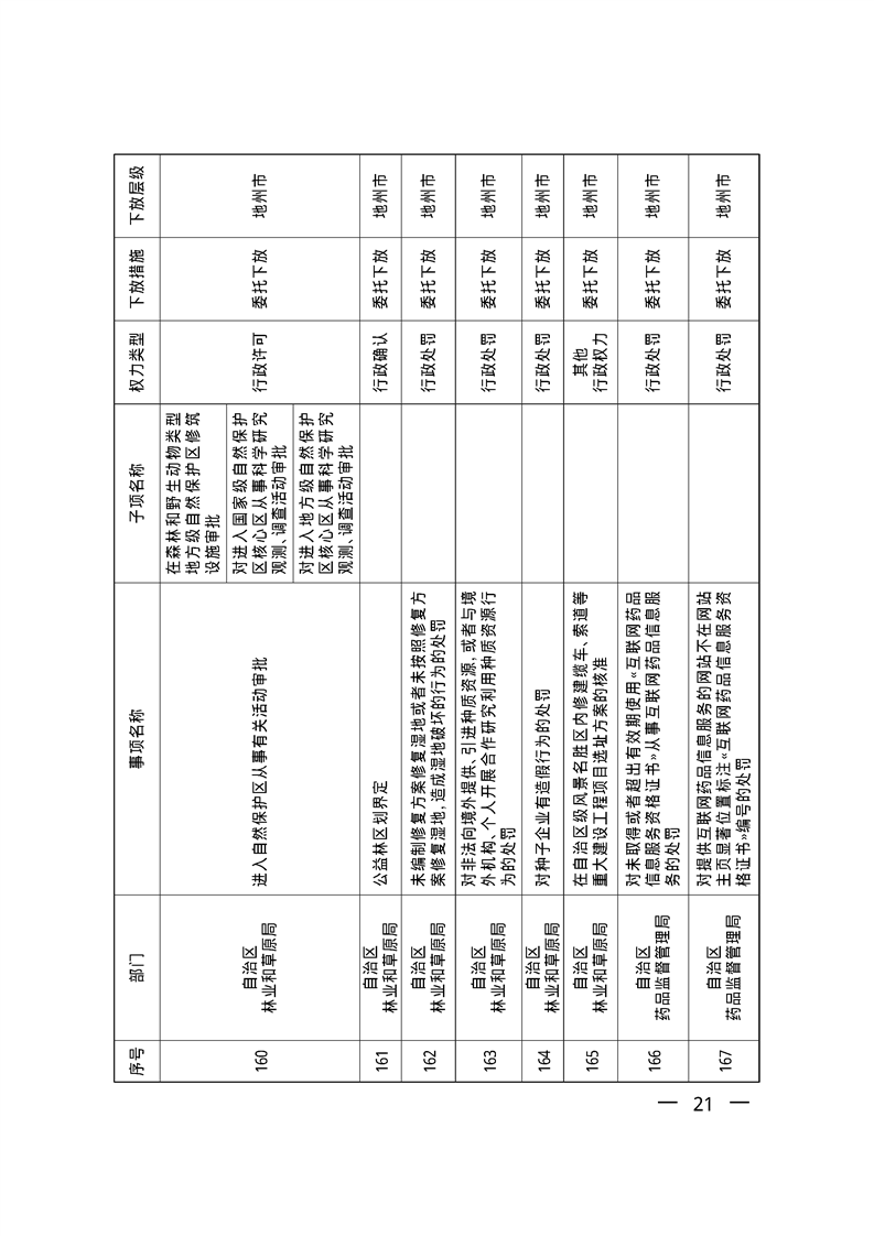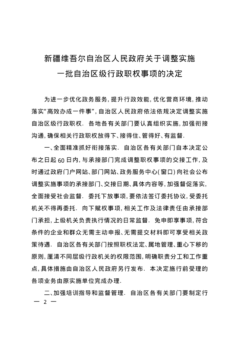 新疆维吾尔自治区人民政府关于调整实施一批自治区级行政职权事项的决定(自治区人民政府令第250号)