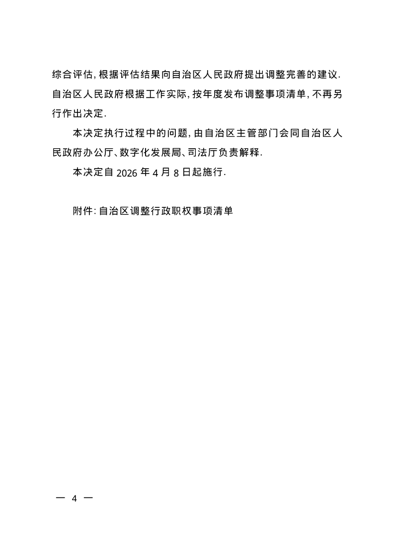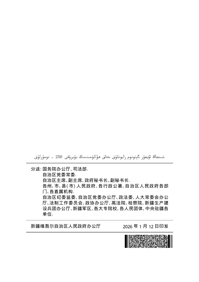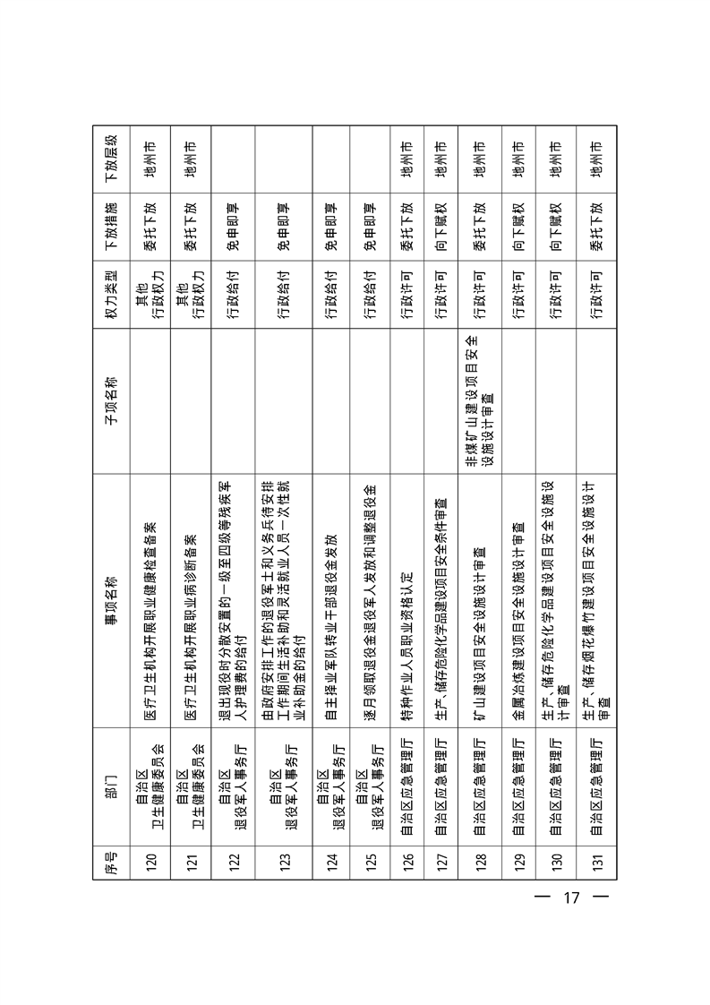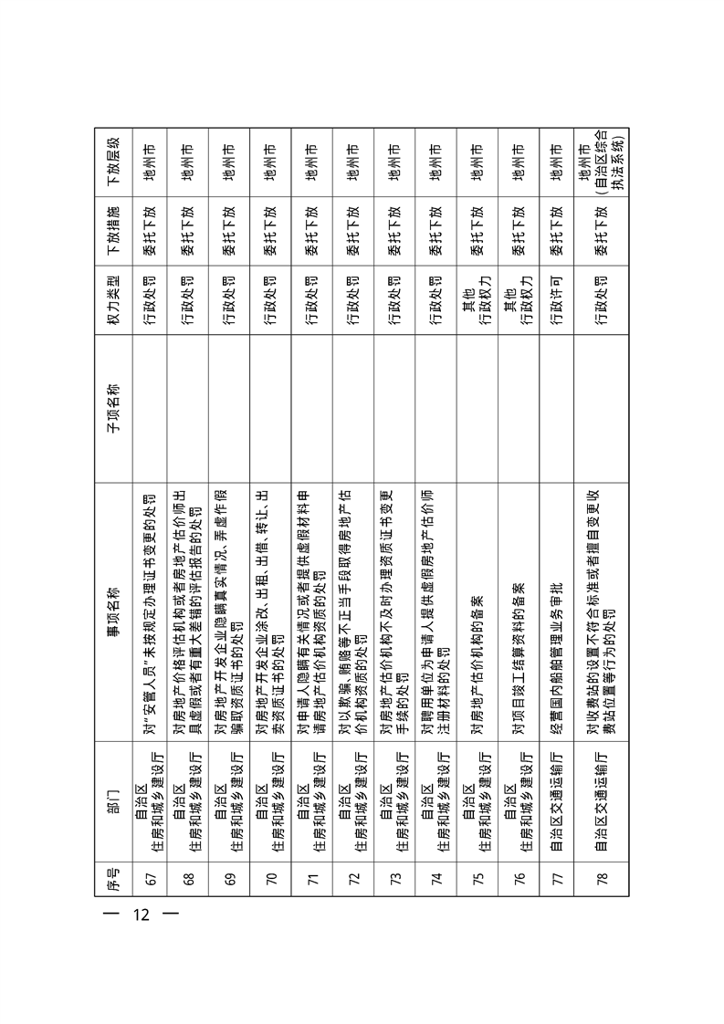 新疆维吾尔自治区人民政府关于调整实施一批自治区级行政职权事项的决定(自治区人民政府令第250号)
