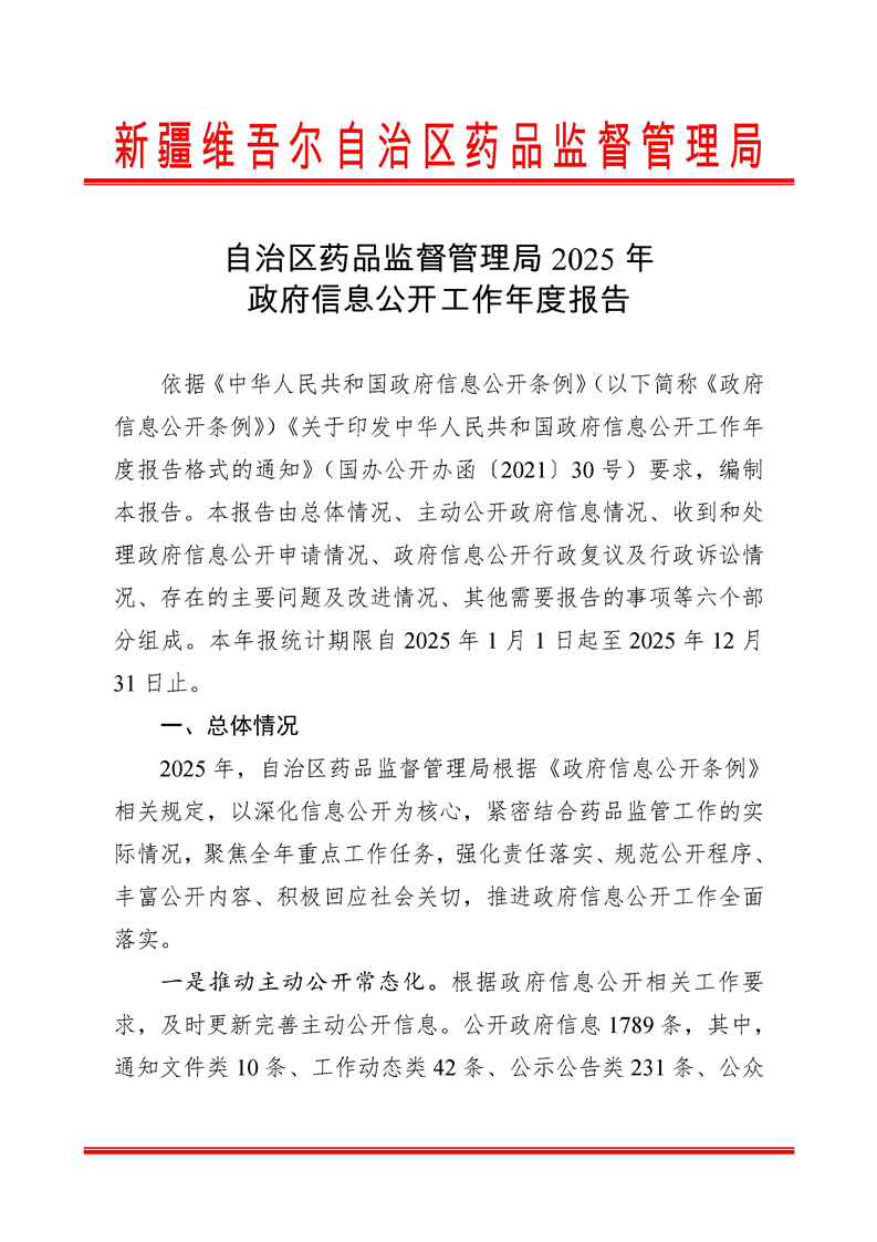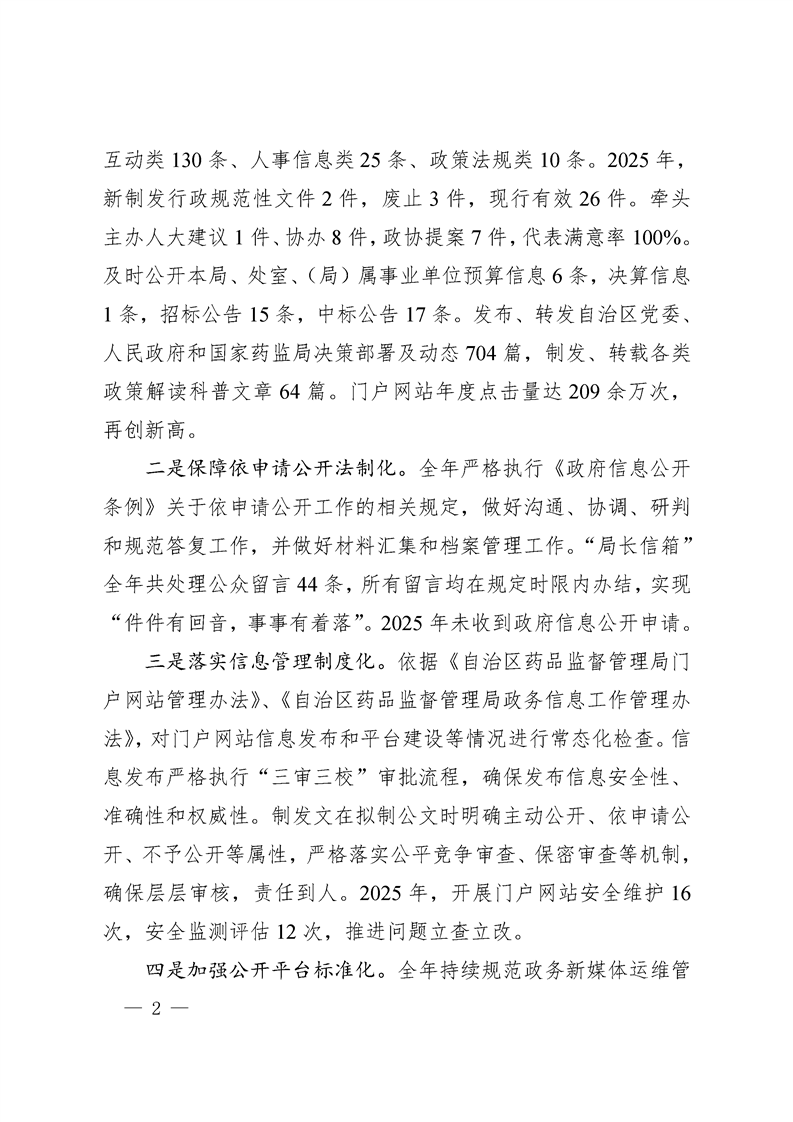 自治区药品监督管理局2025年政府信息公开工作年度报告