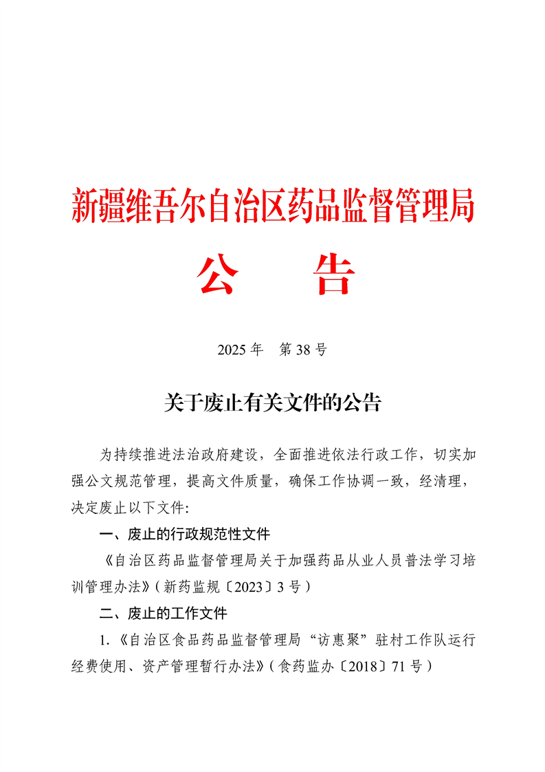 关于废止有关文件的公告(2025年第38号)