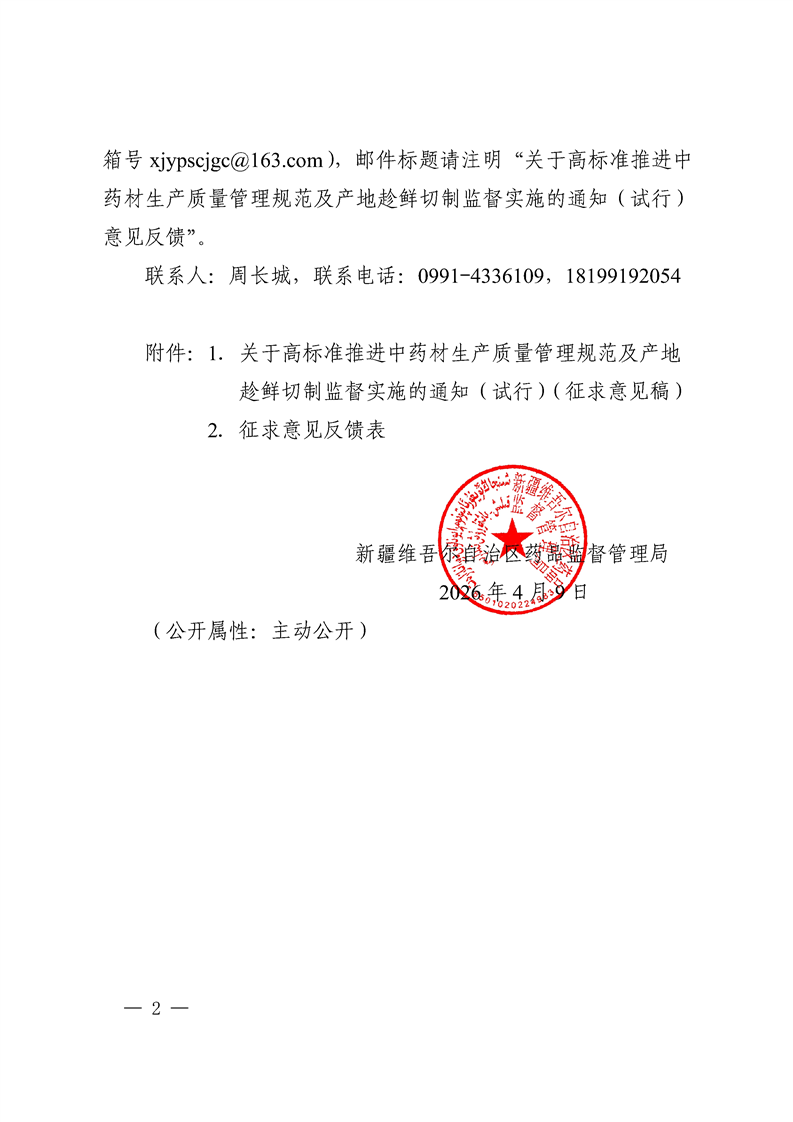 关于公开征求《关于高标准推进中药材生产质量管理规范及产地趁鲜切制监督实施的通知(试行)(意见建议的通告征求意见稿))》