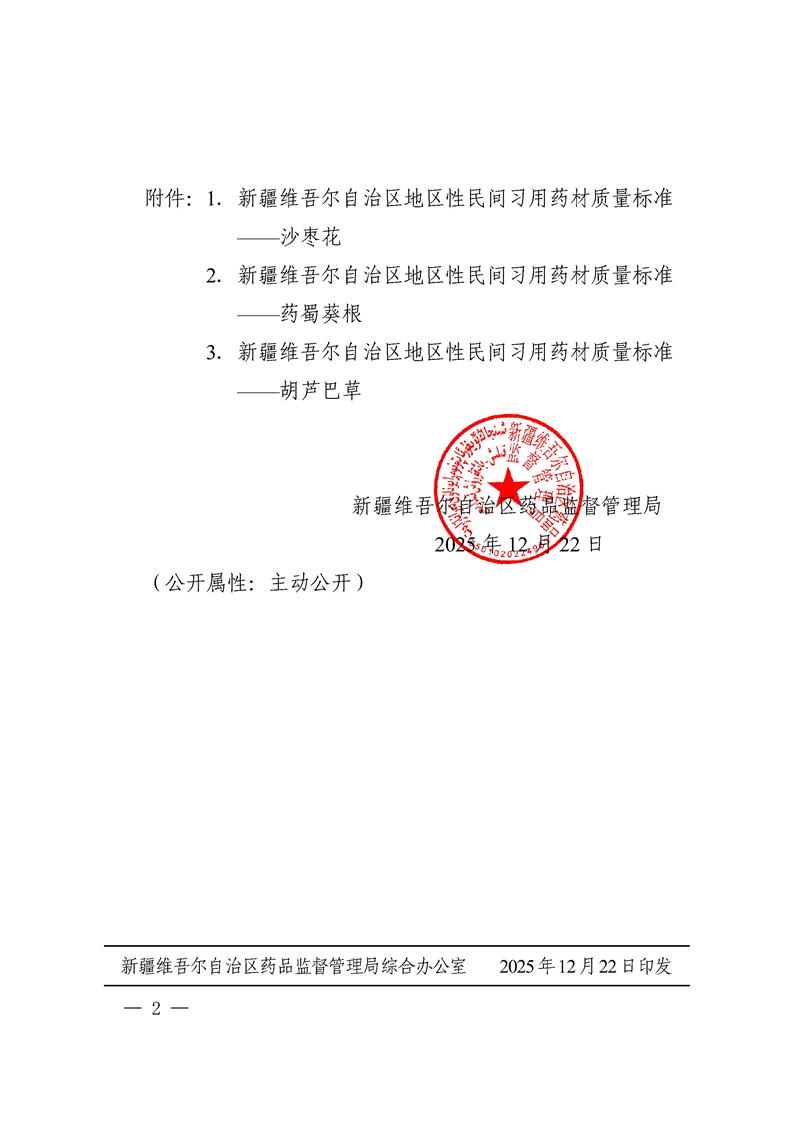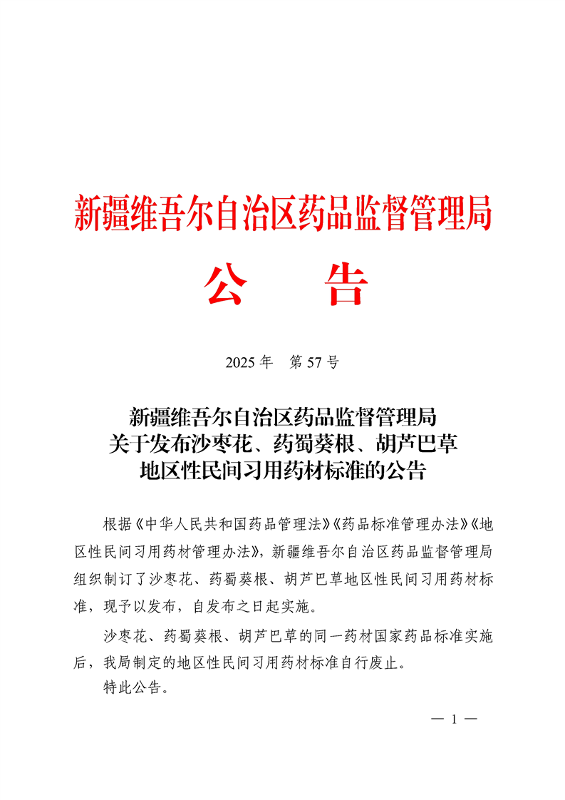 新疆维吾尔自治区药品监督管理局关于发布沙枣花、药蜀葵根、胡芦巴草地区性民间习用药材标准的公告(2925年第57号)
