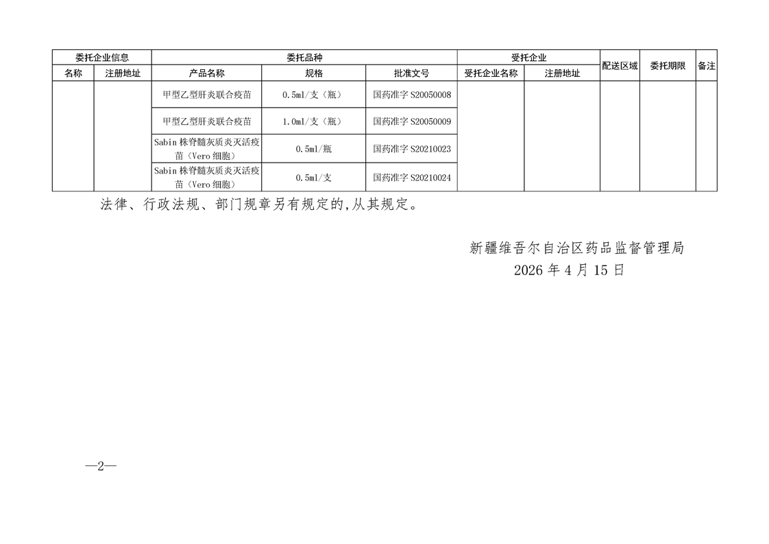 关于疫苗委托储存配送信息的公告(2026年第19期)