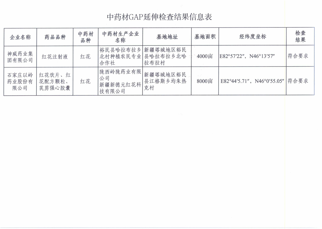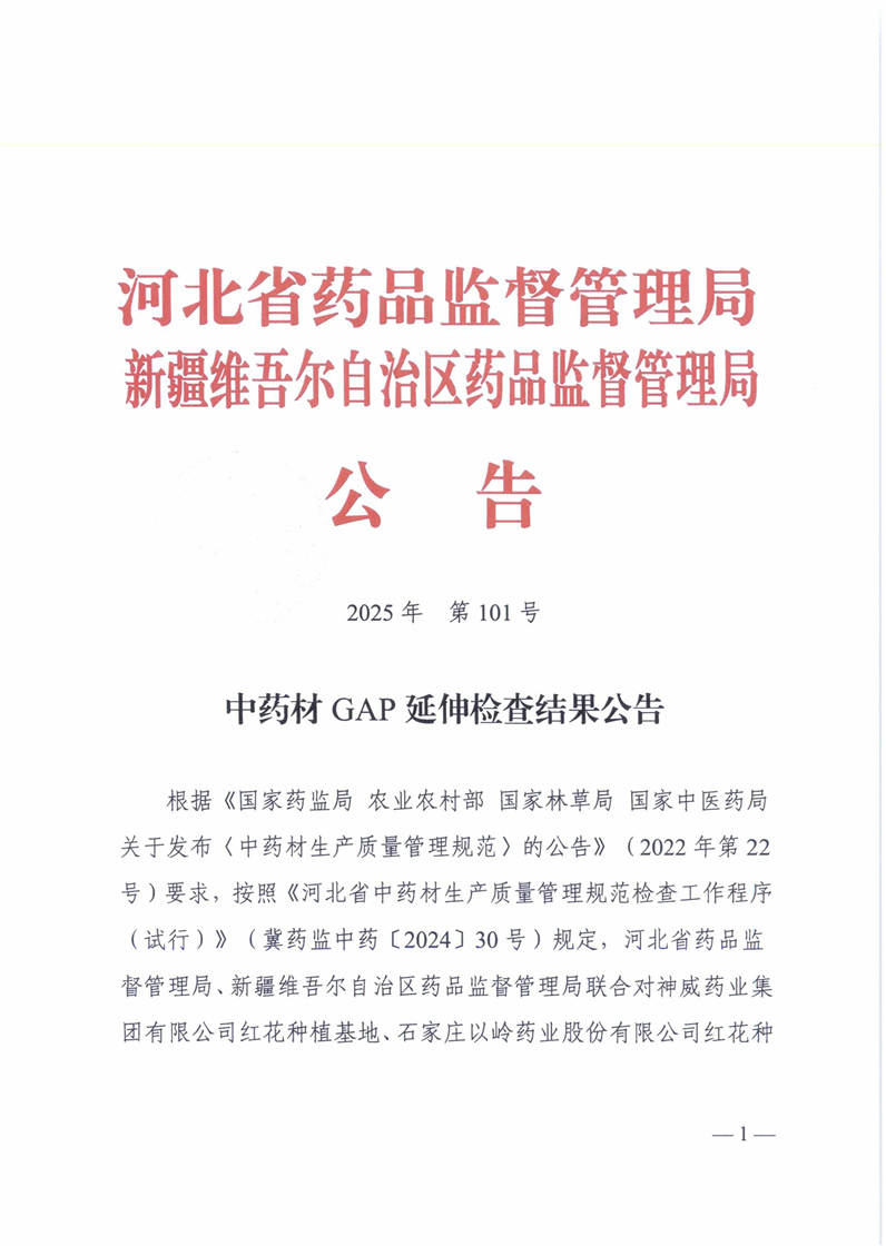 河北省药品监督管理局、新疆维吾尔自治区药品监督管理局中药材GAP延伸检查结果公告(2025年第101号)
