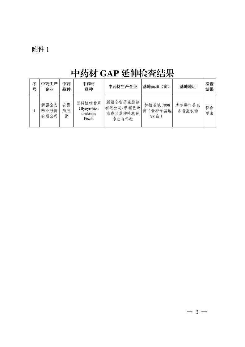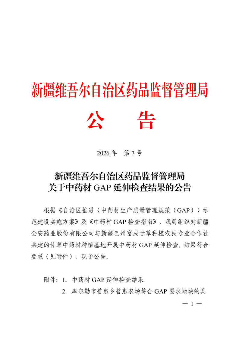 新疆维吾尔自治区药品监督管理局关于中药材GAP延伸检查结果的公告 (2026年第7号)