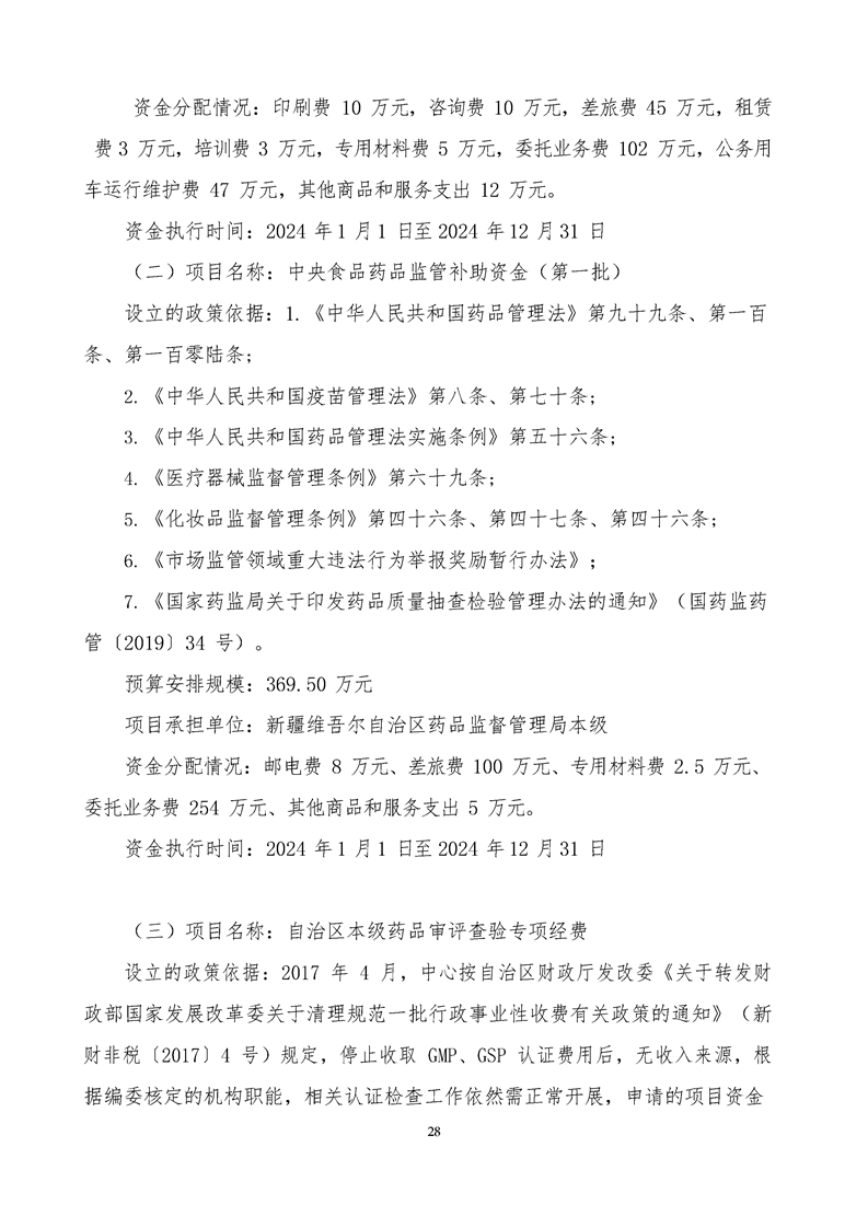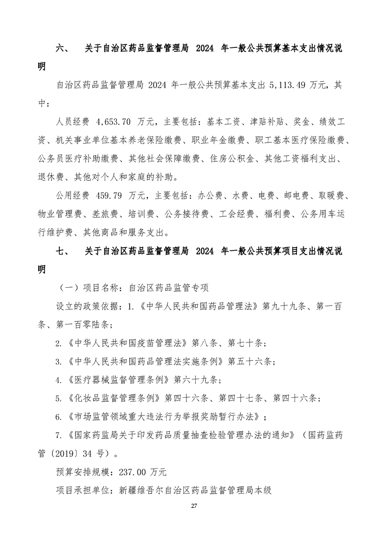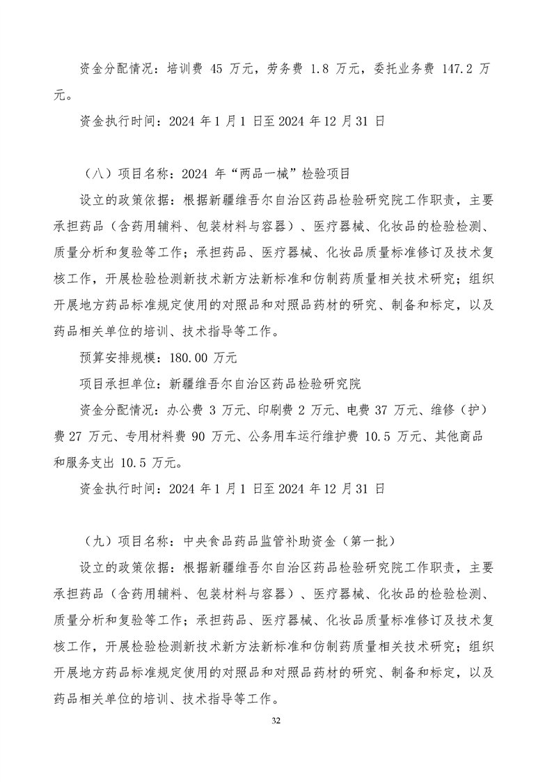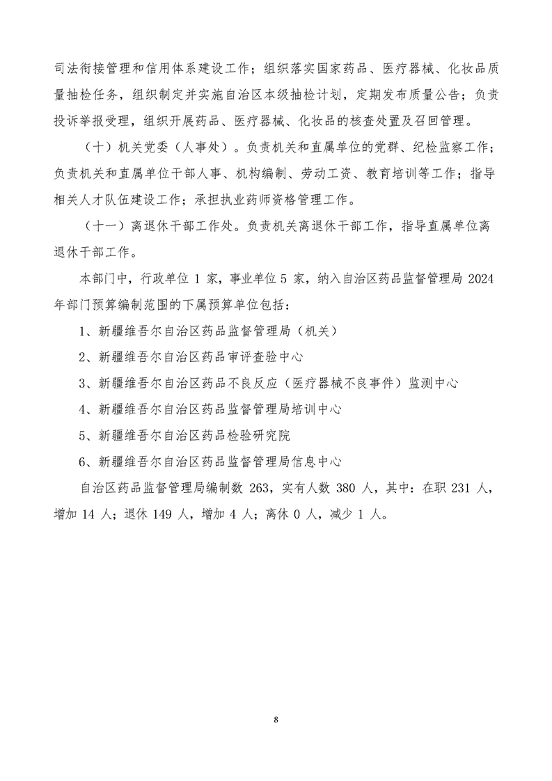 新疆维吾尔自治区药品监督管理局2024年部门预算公开报告