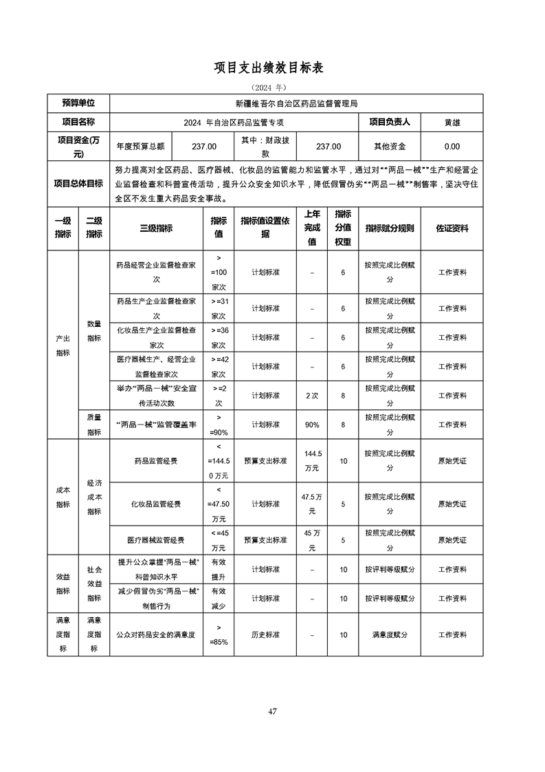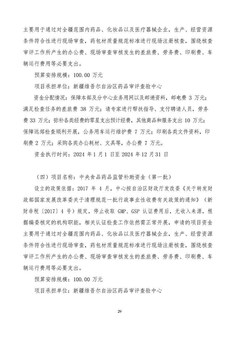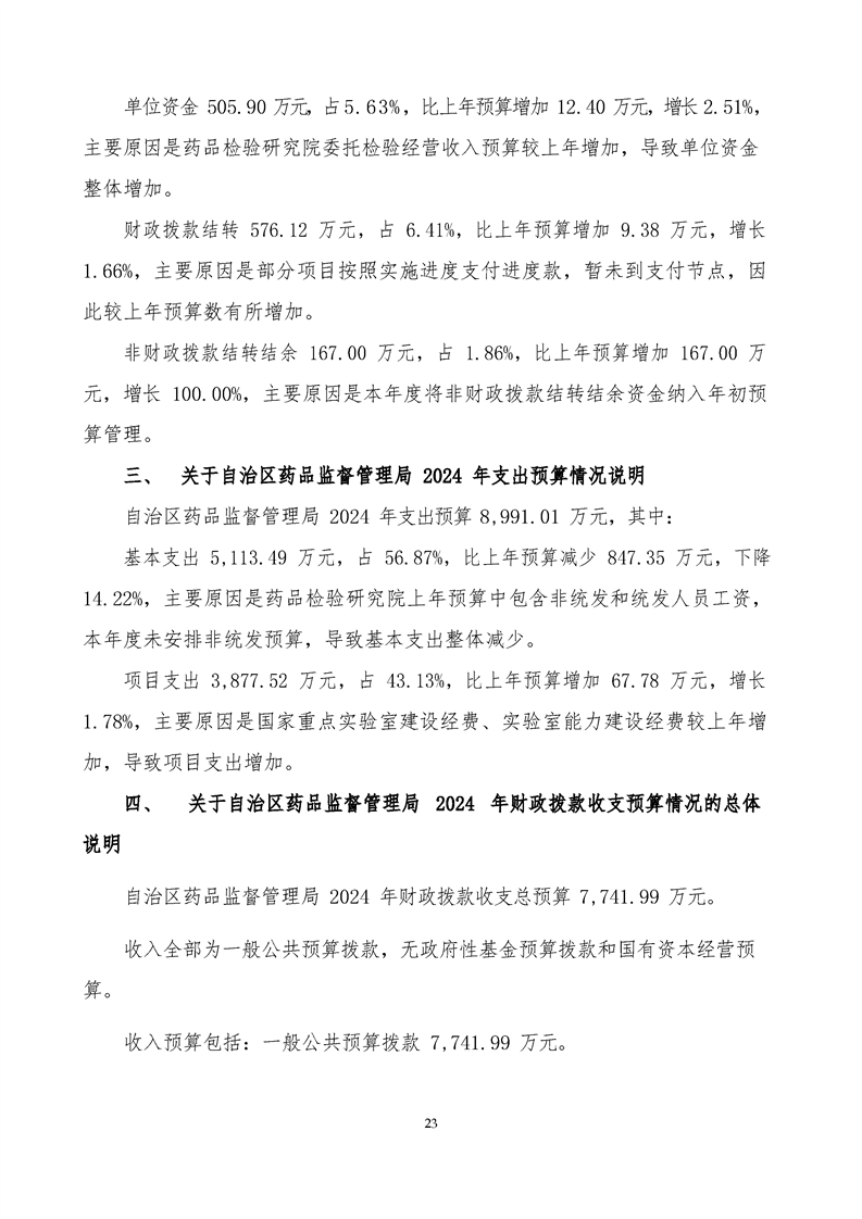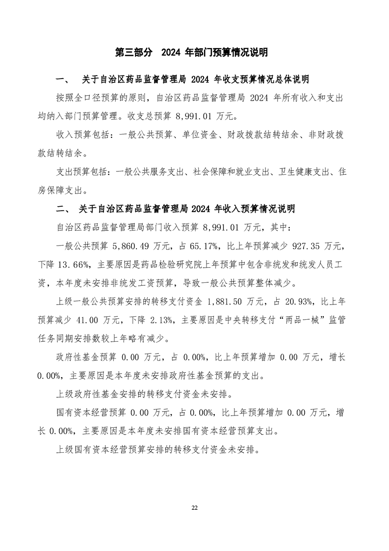 新疆维吾尔自治区药品监督管理局2024年部门预算公开报告