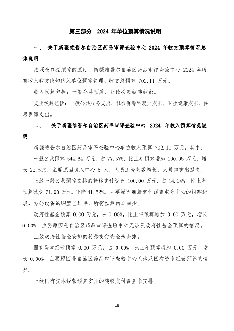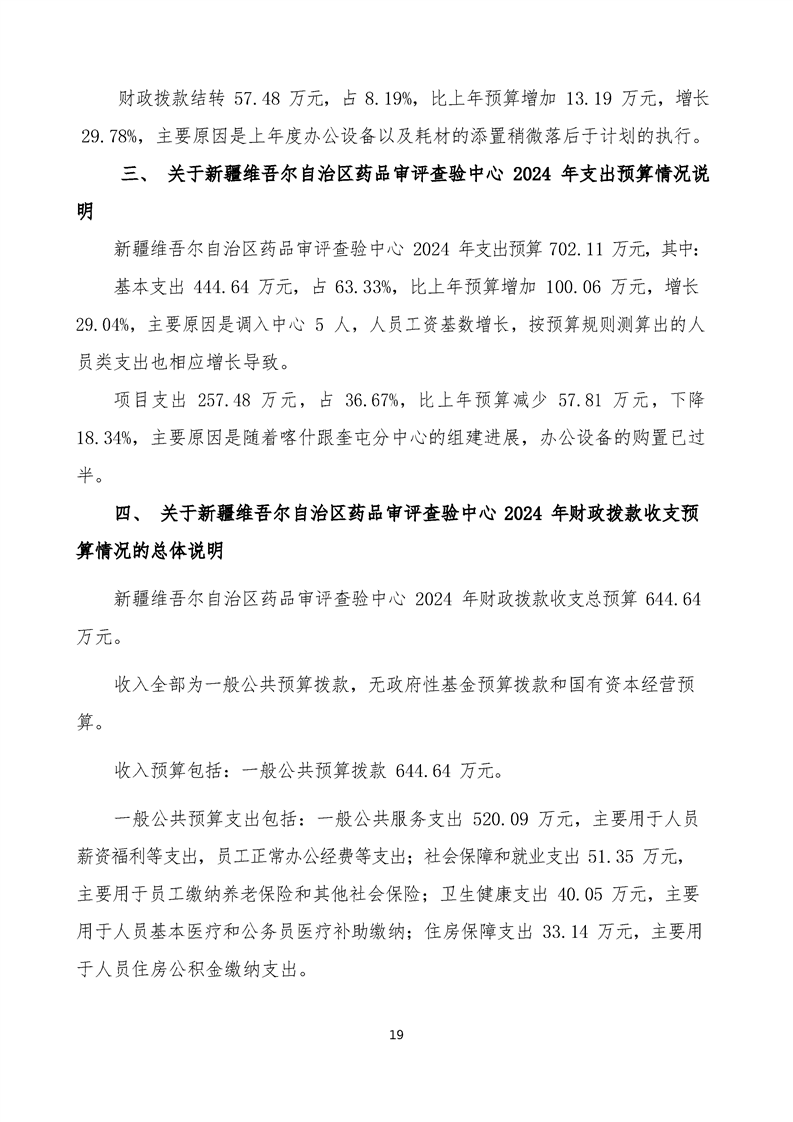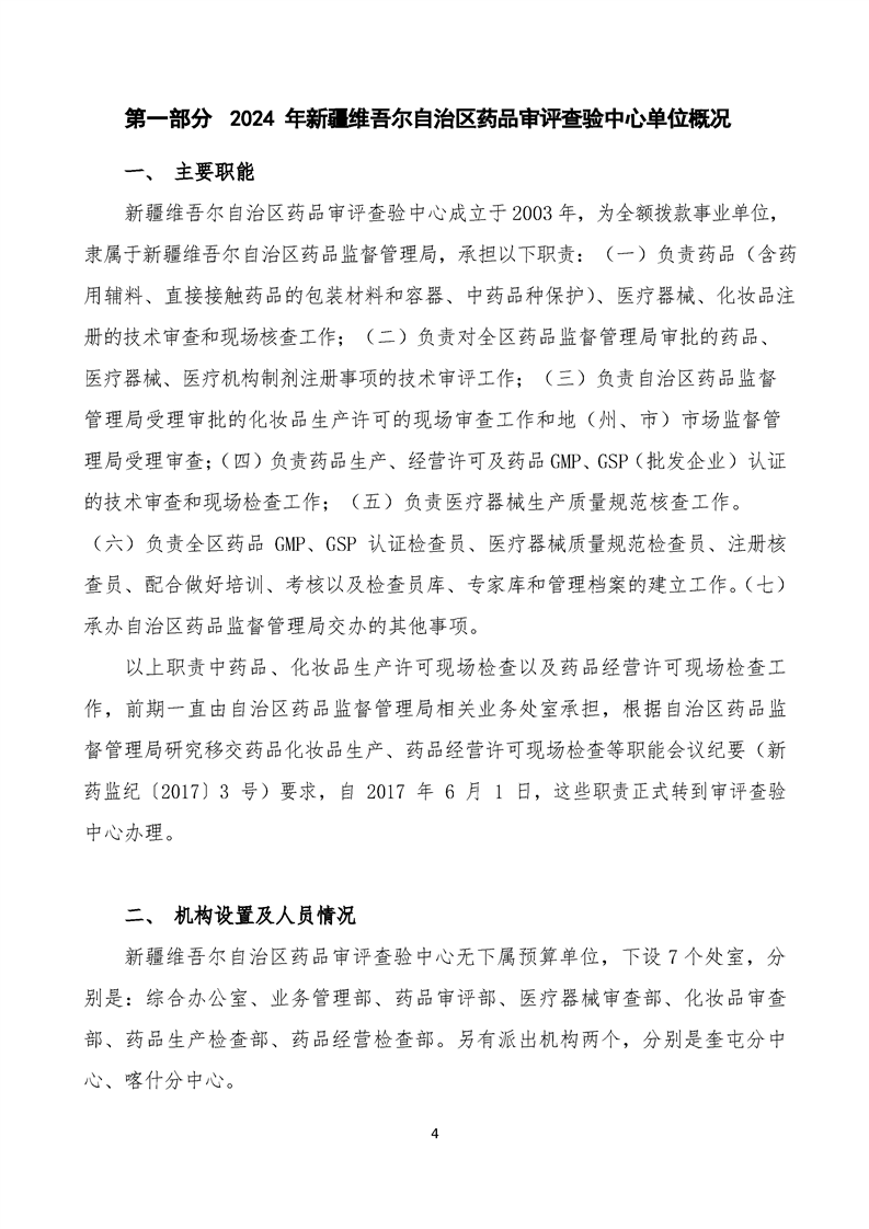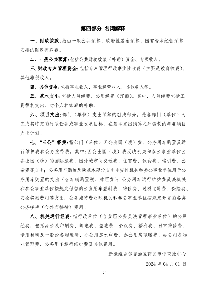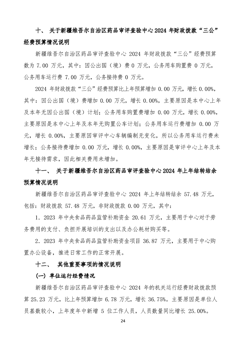 新疆维吾尔自治区药品审评查验中心2024年单位预算公开报告
