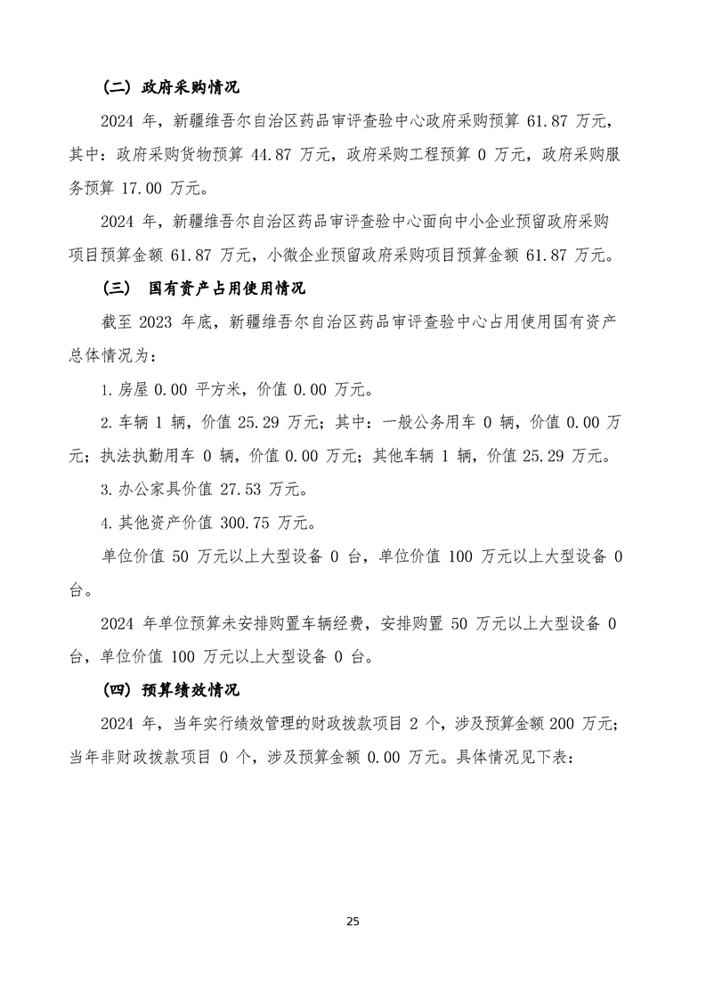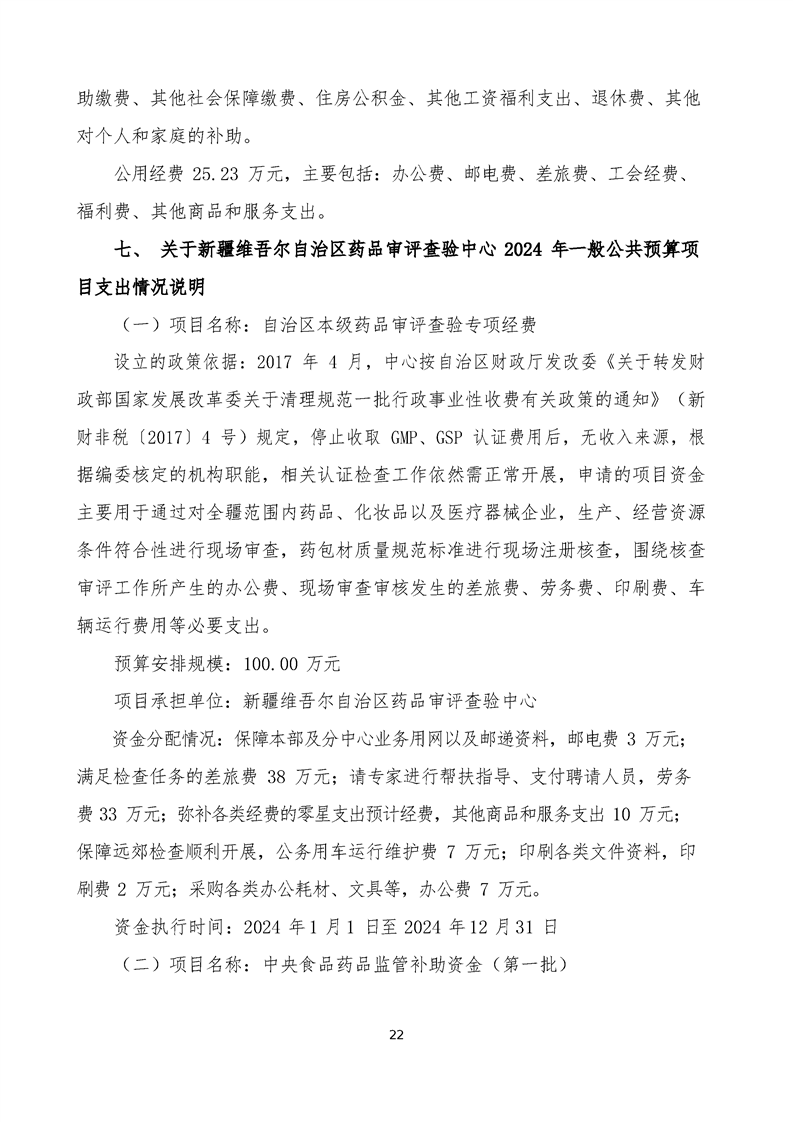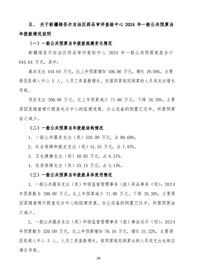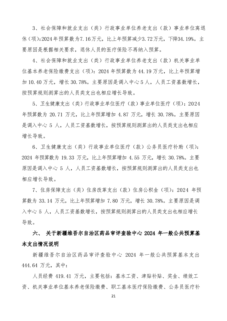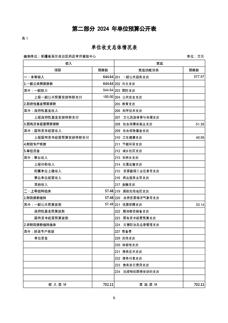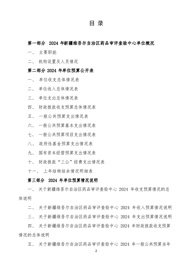 新疆维吾尔自治区药品审评查验中心2024年单位预算公开报告