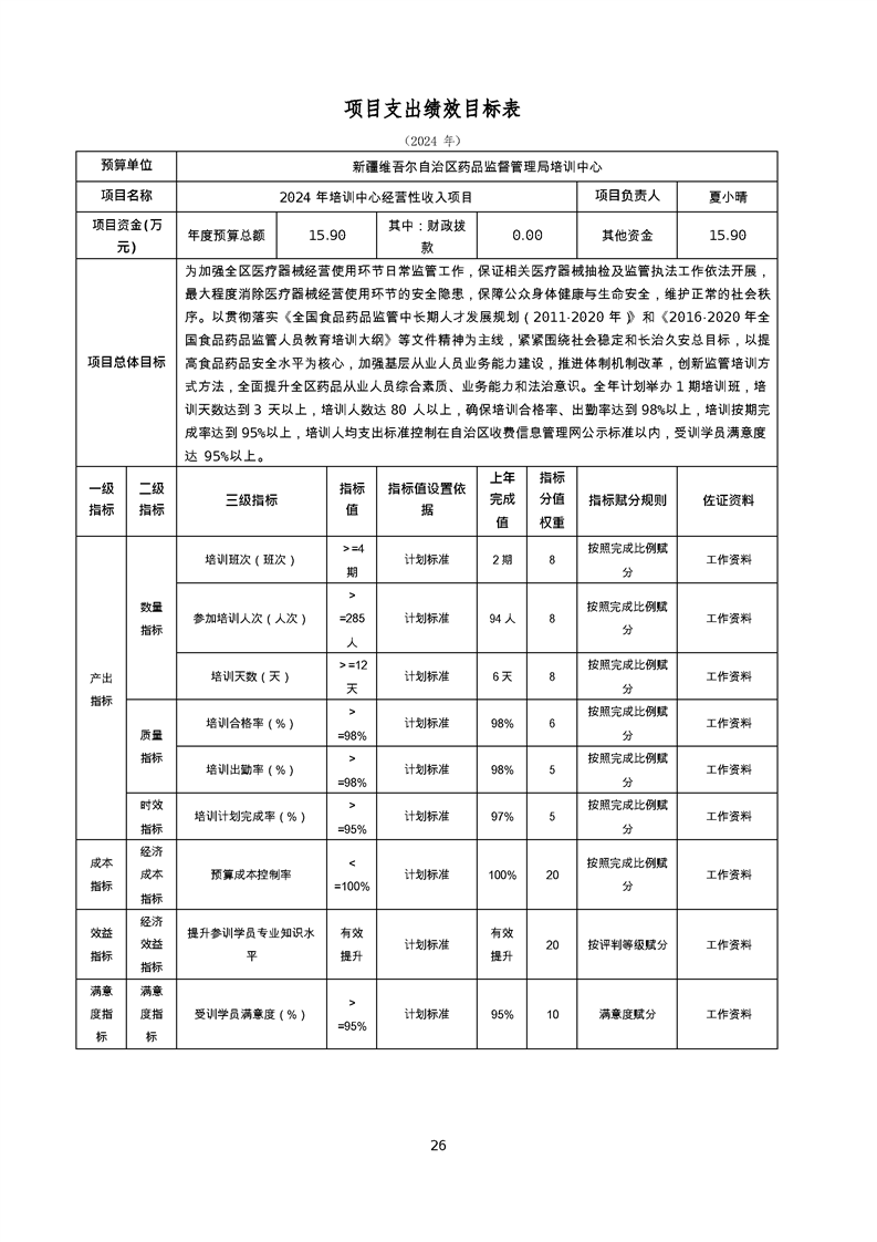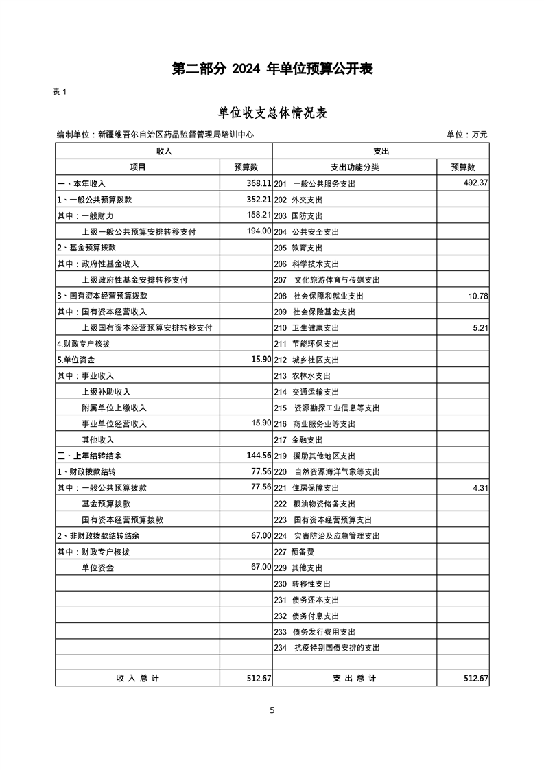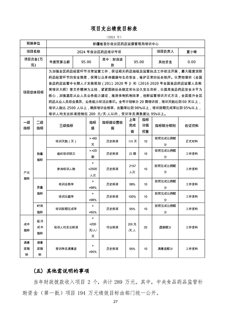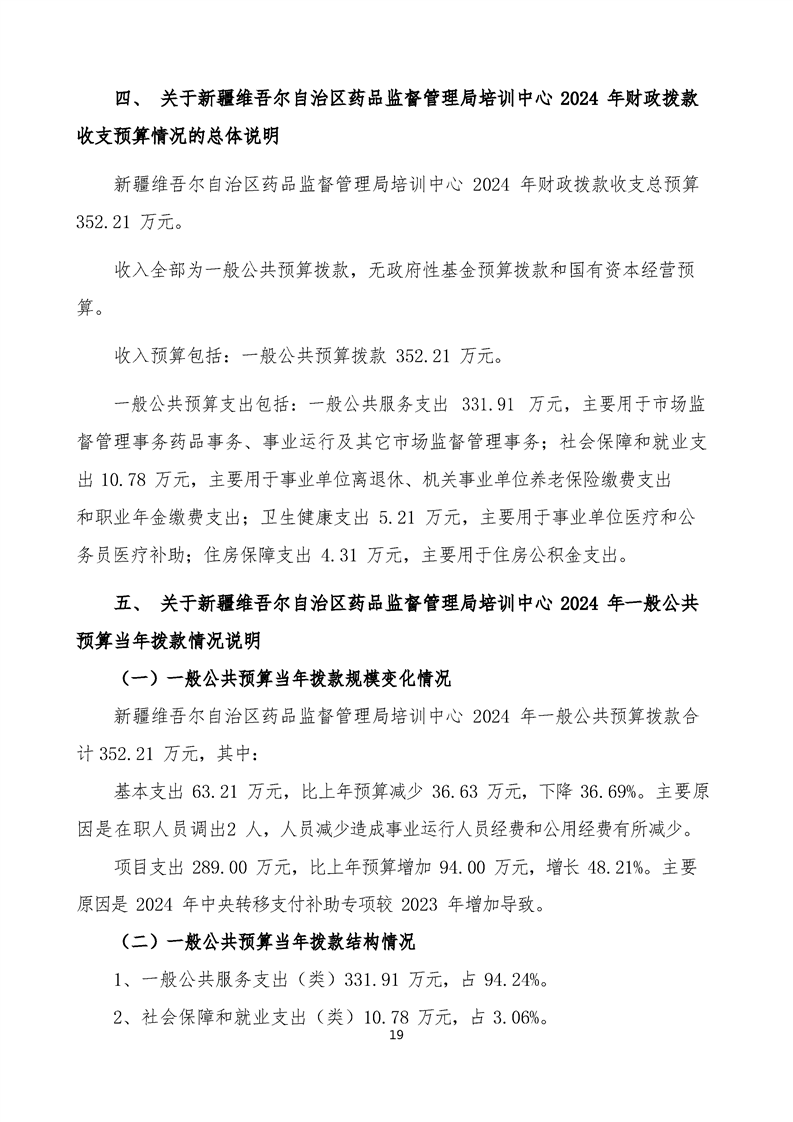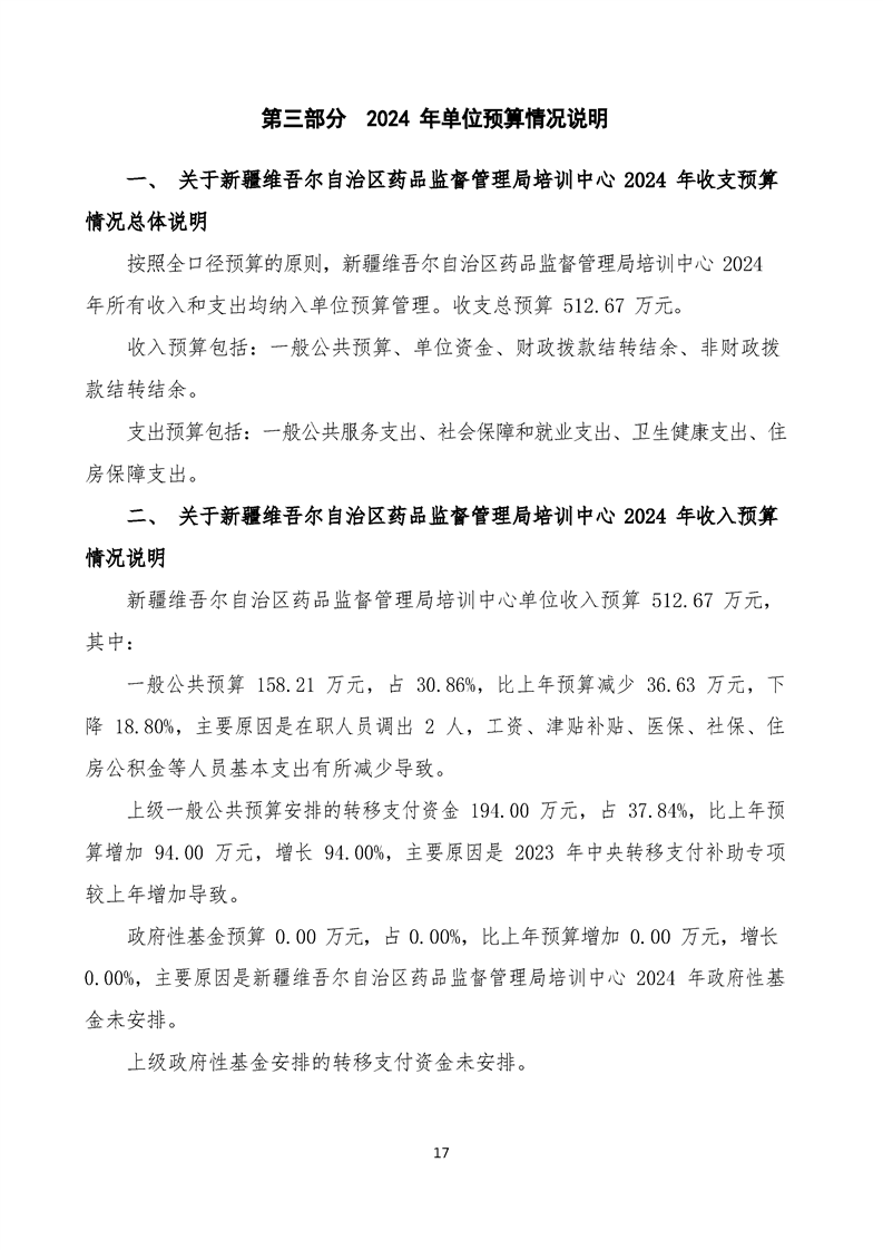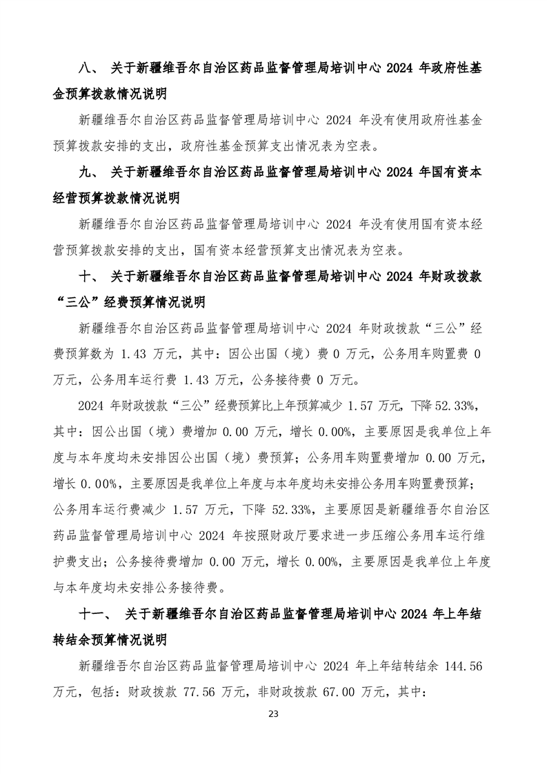 新疆维吾尔自治区药品监督管理局培训中心2024年单位预算公开报告