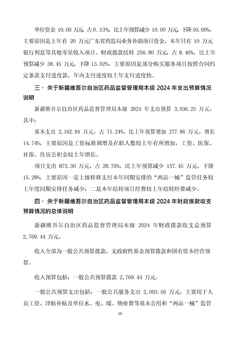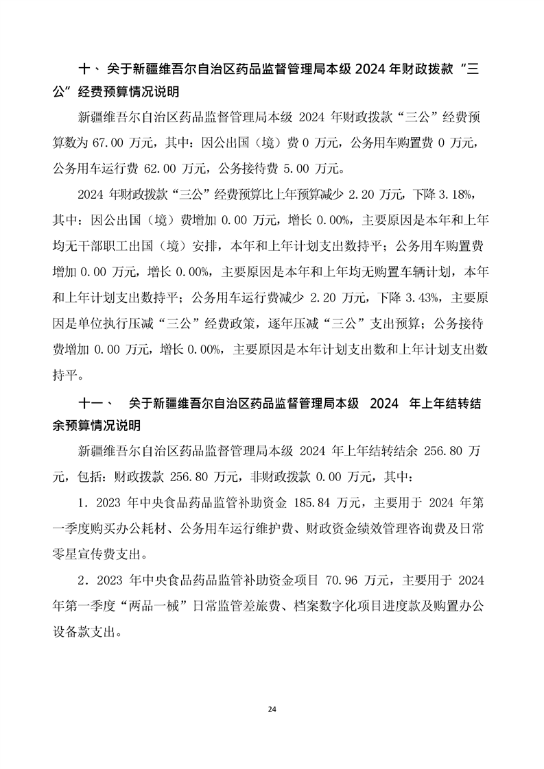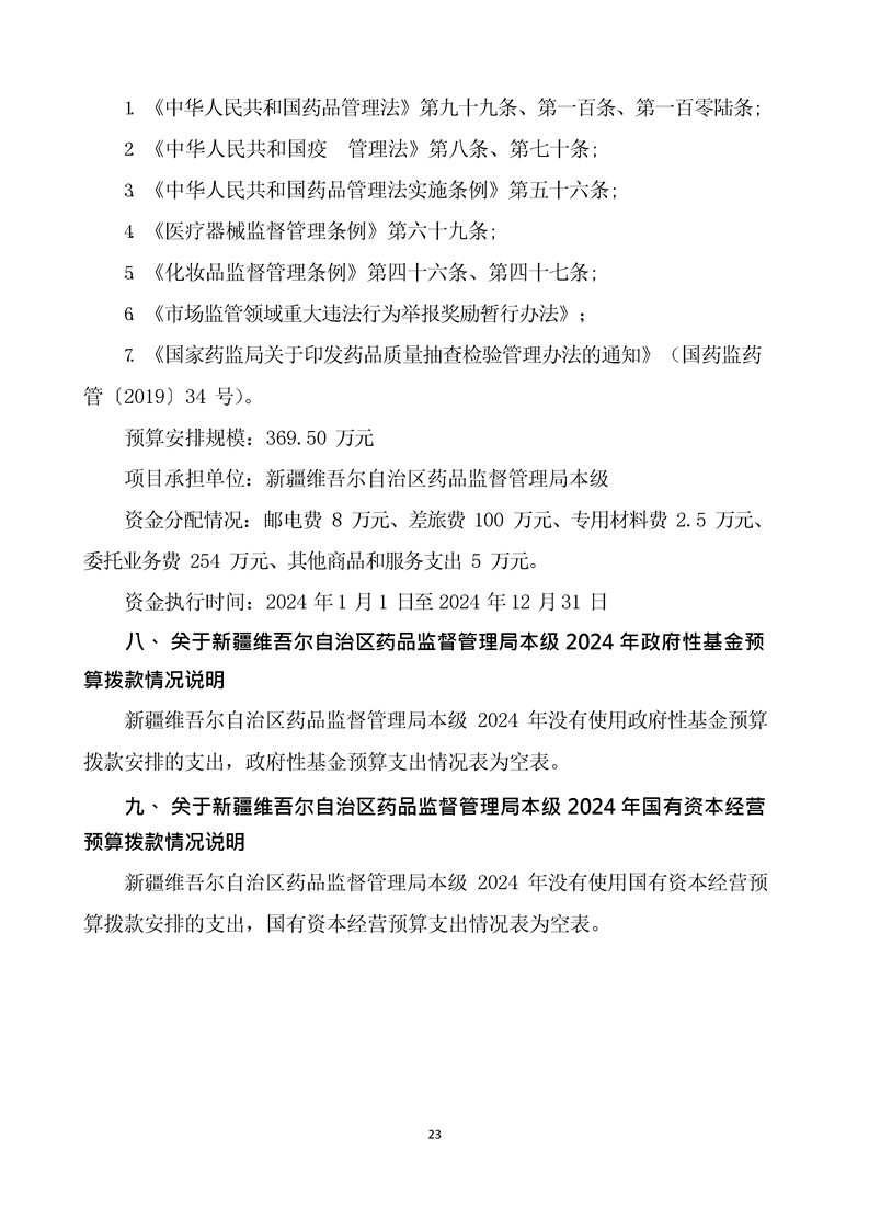 新疆维吾尔自治区药品监督管理局2024年单位预算公开