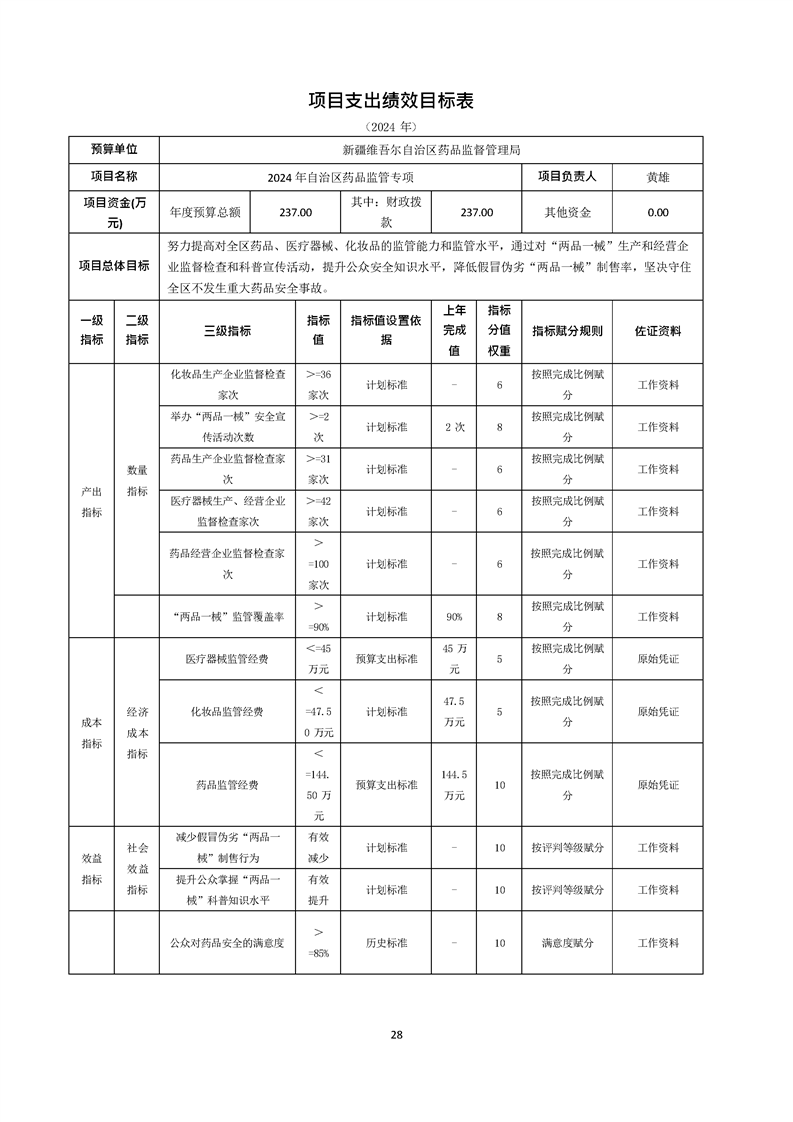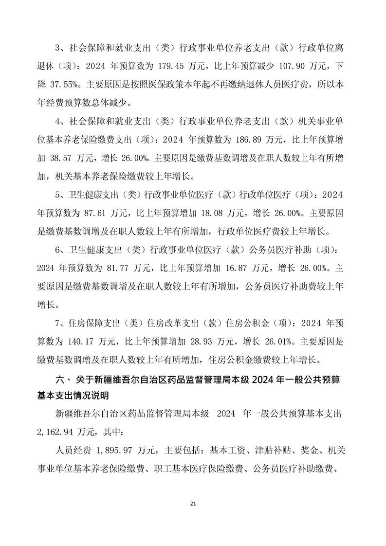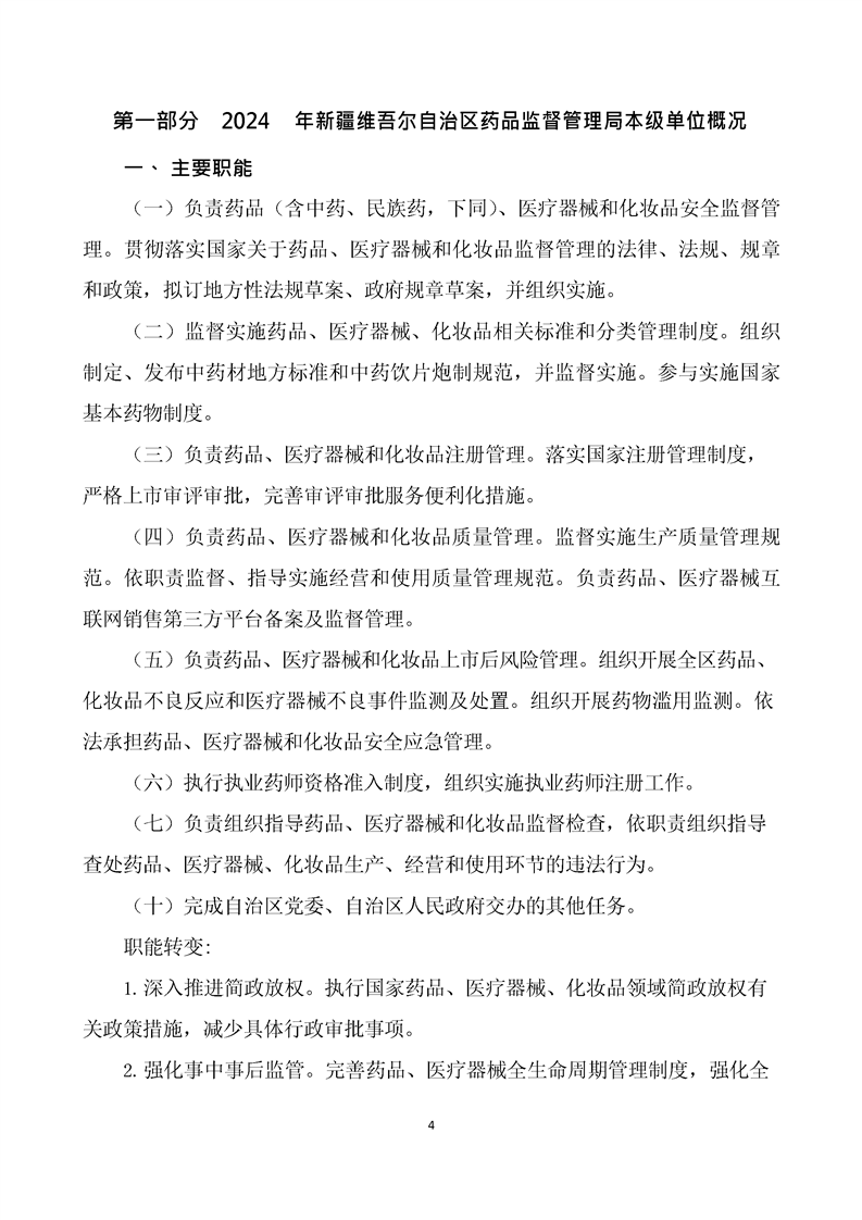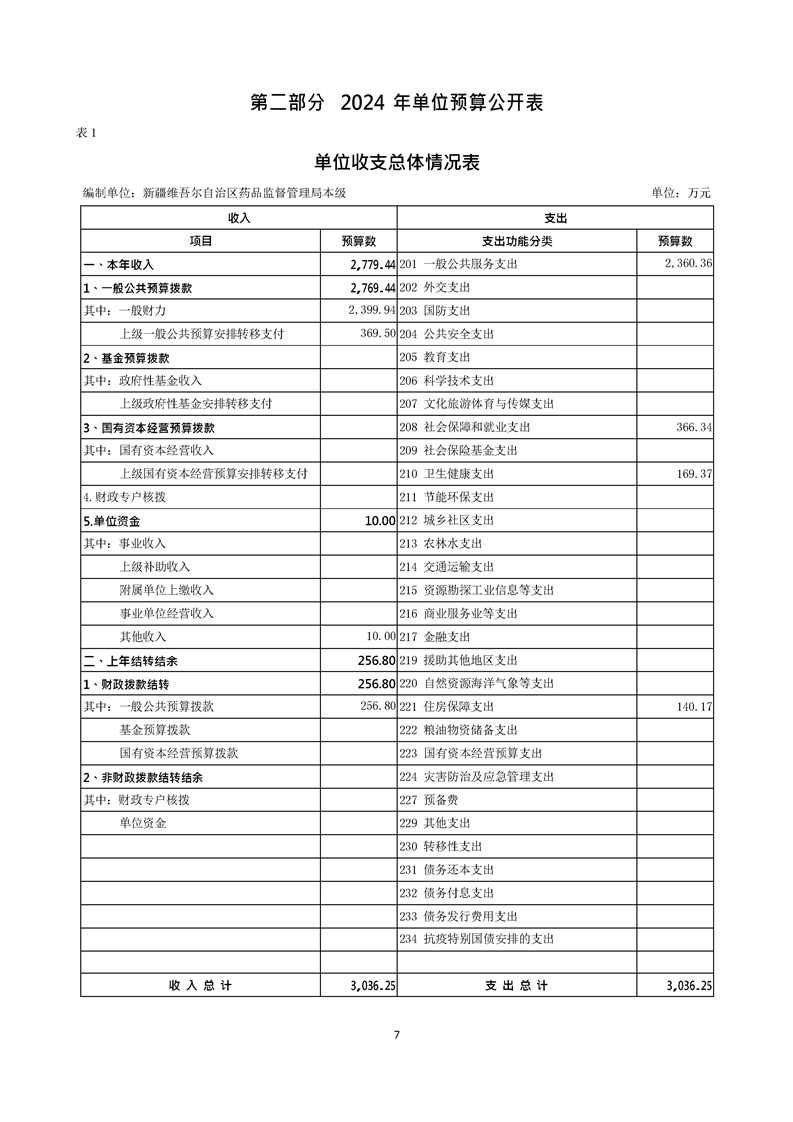 新疆维吾尔自治区药品监督管理局2024年单位预算公开