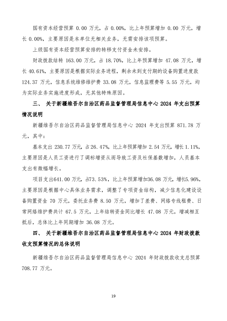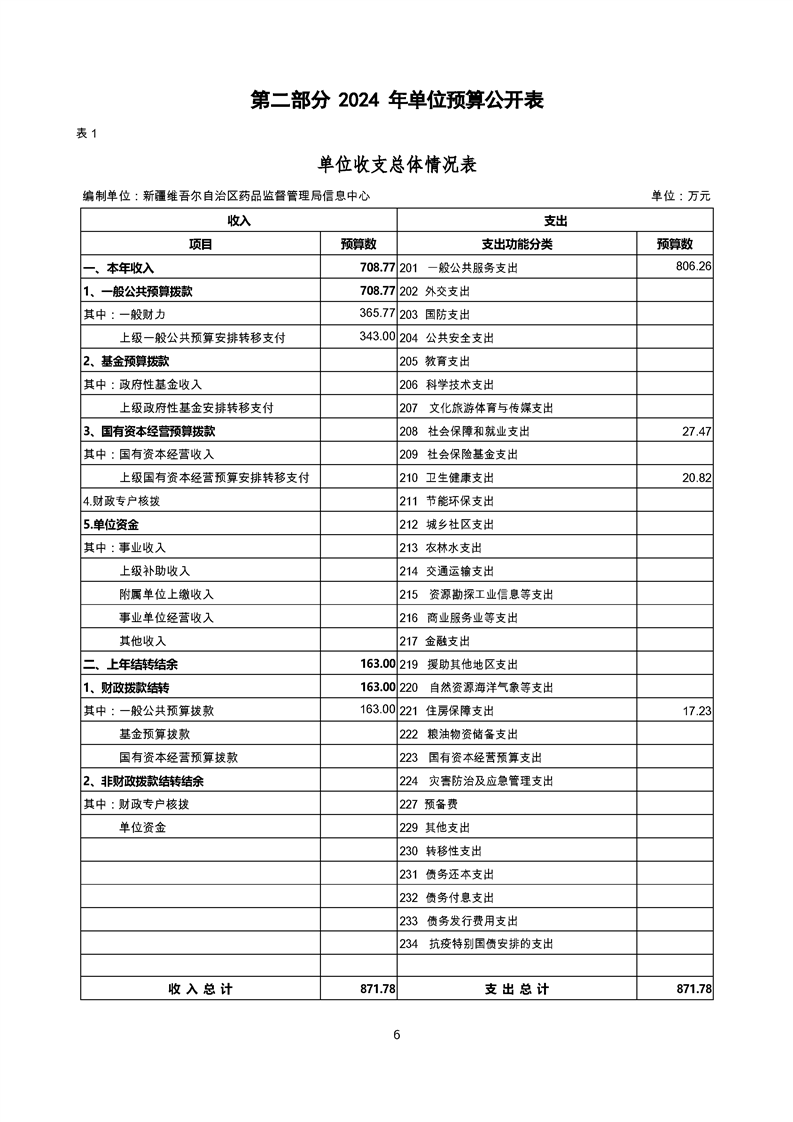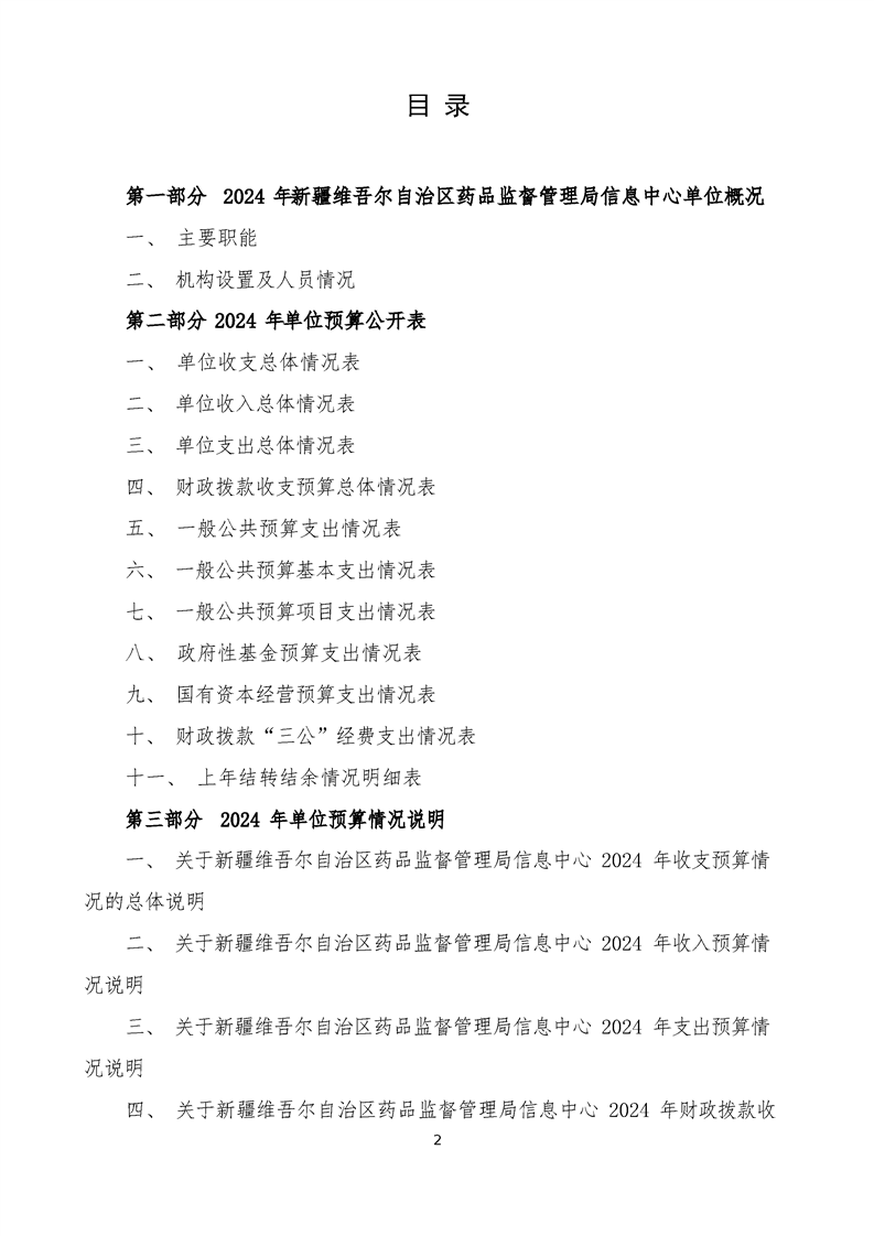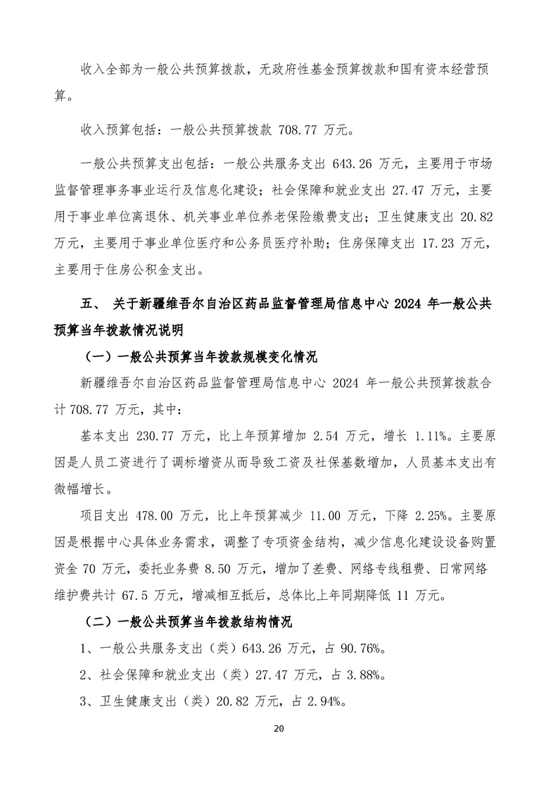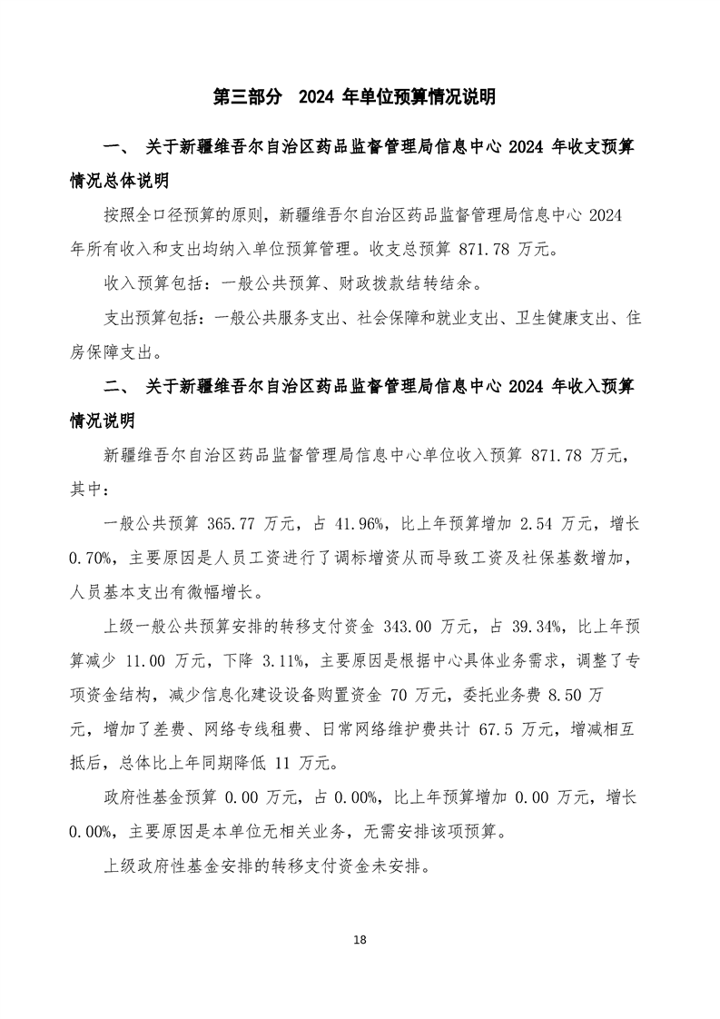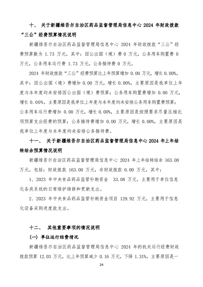 新疆维吾尔自治区药品监督管理局信息中心2024年单位预算公开报告