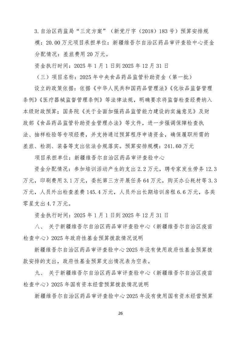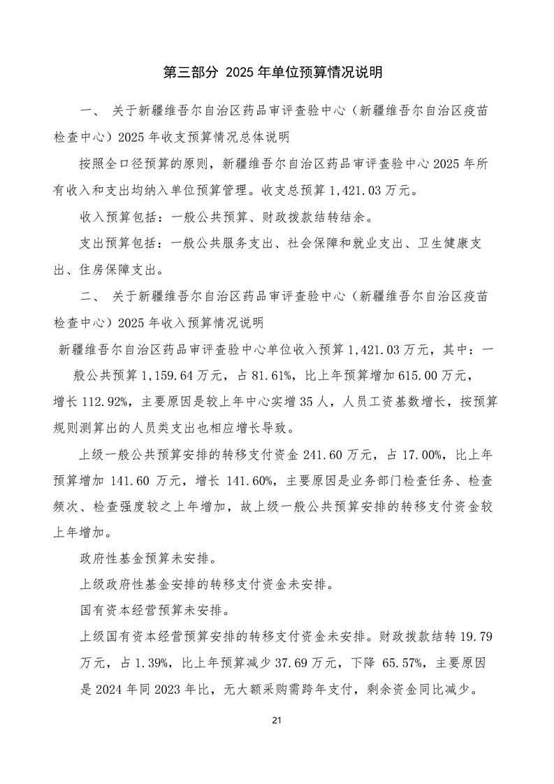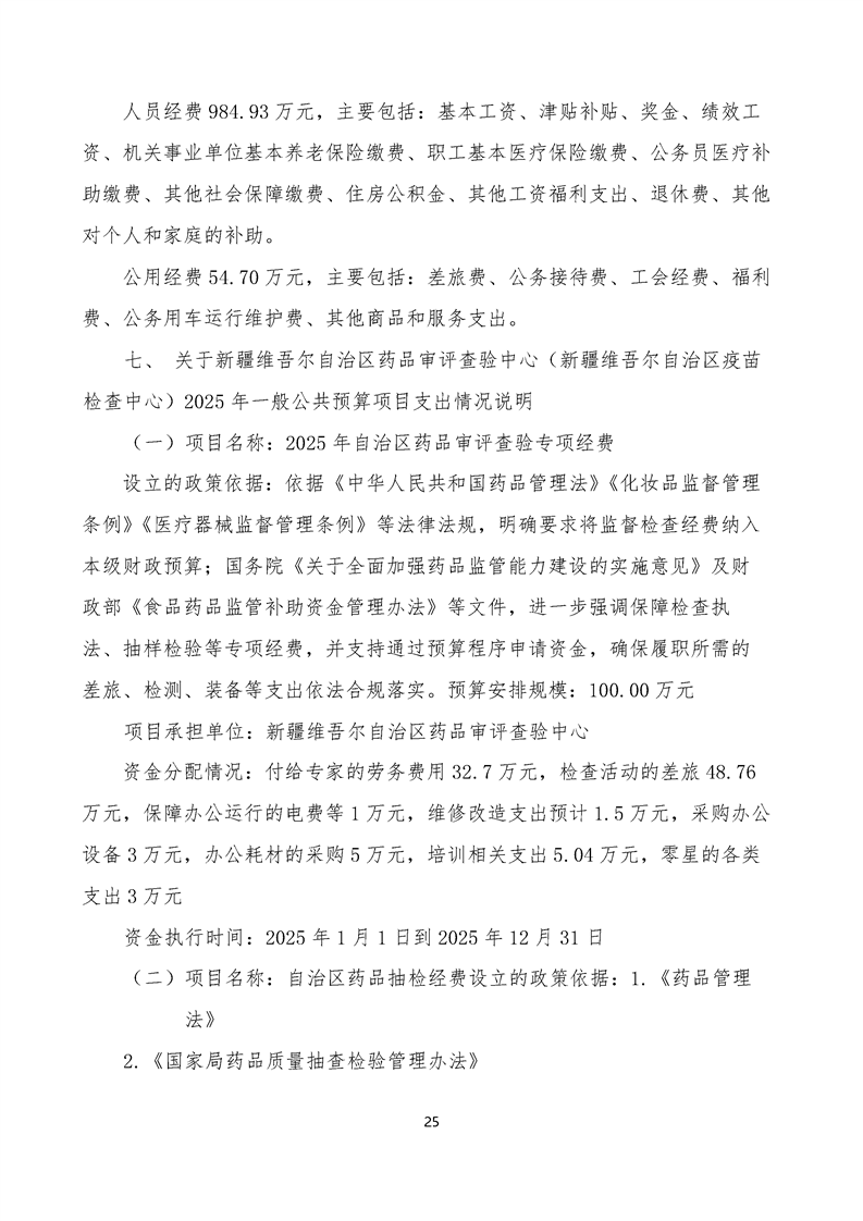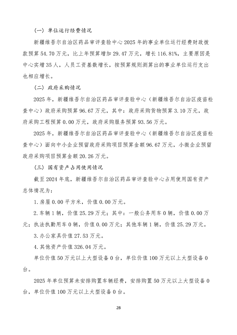 新疆维吾尔自治区药品审评查验中心(新疆维吾尔自治区疫苗检查中心)2025年单位预算公开