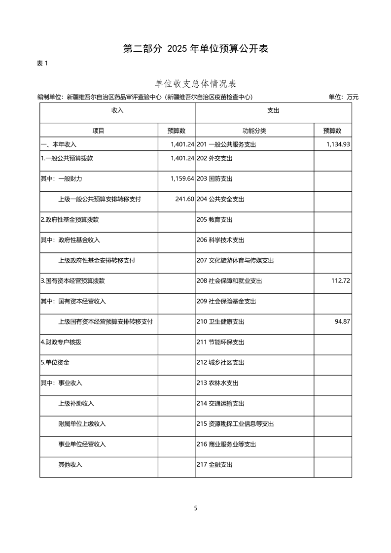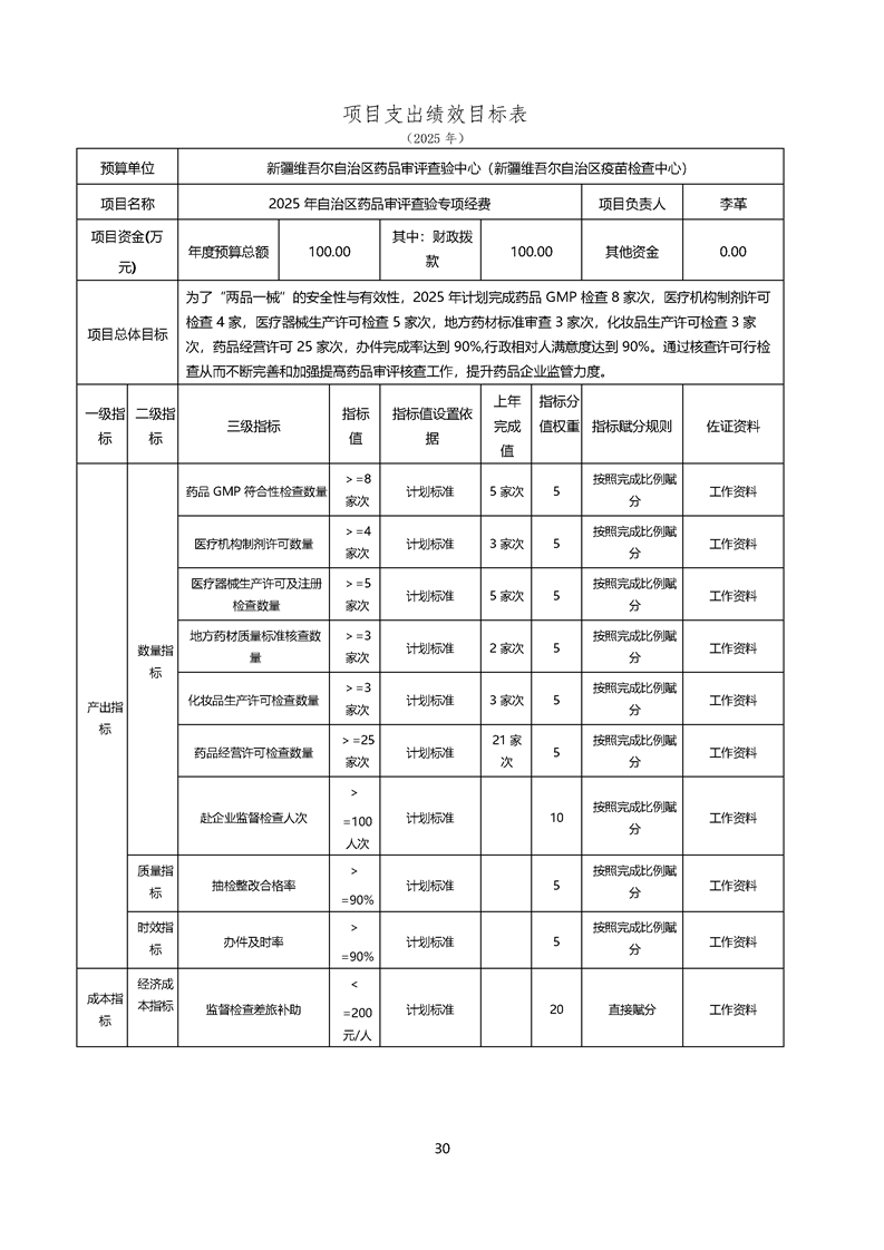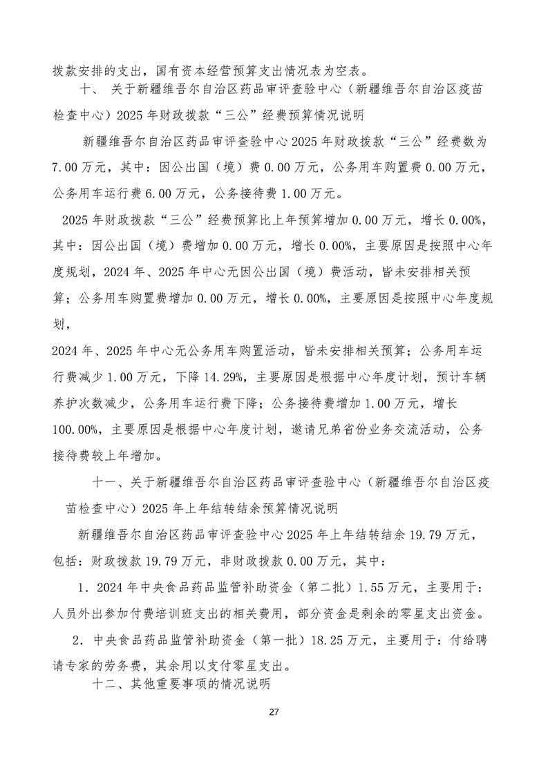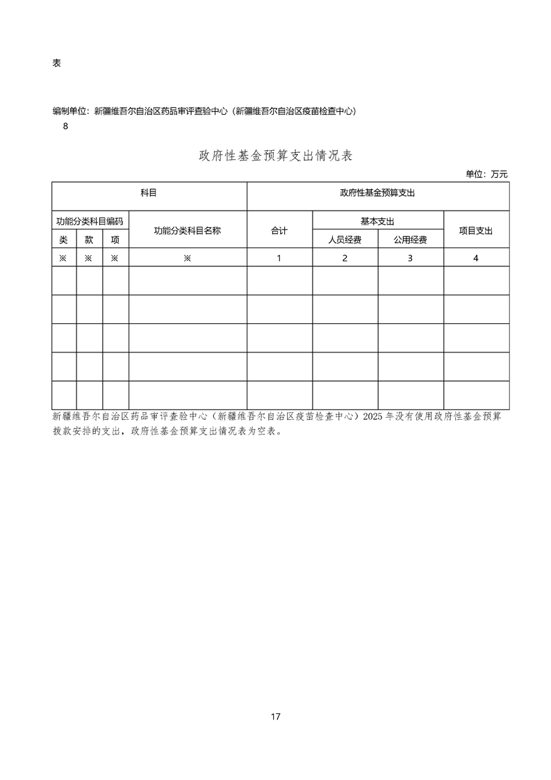 新疆维吾尔自治区药品审评查验中心(新疆维吾尔自治区疫苗检查中心)2025年单位预算公开