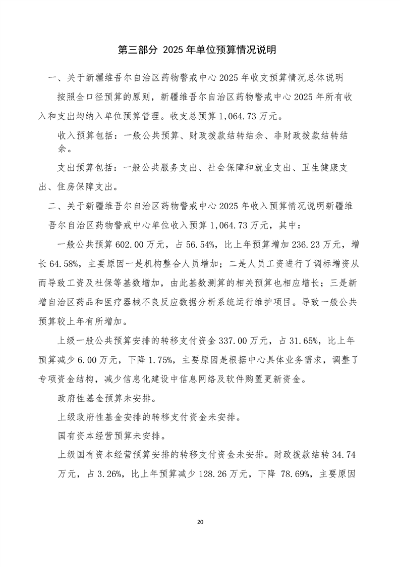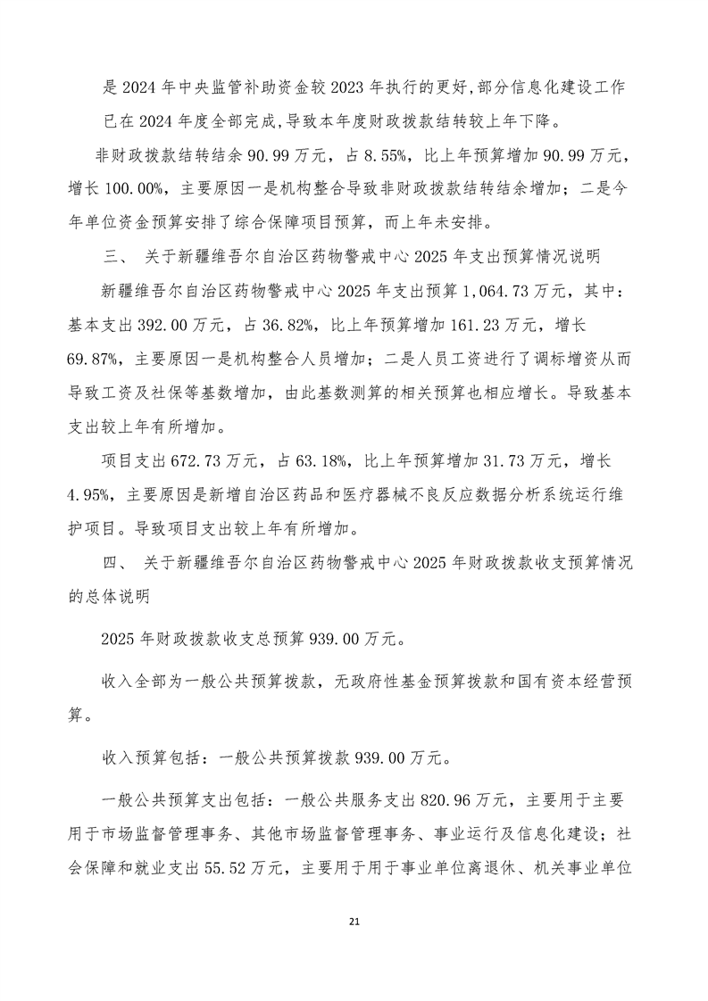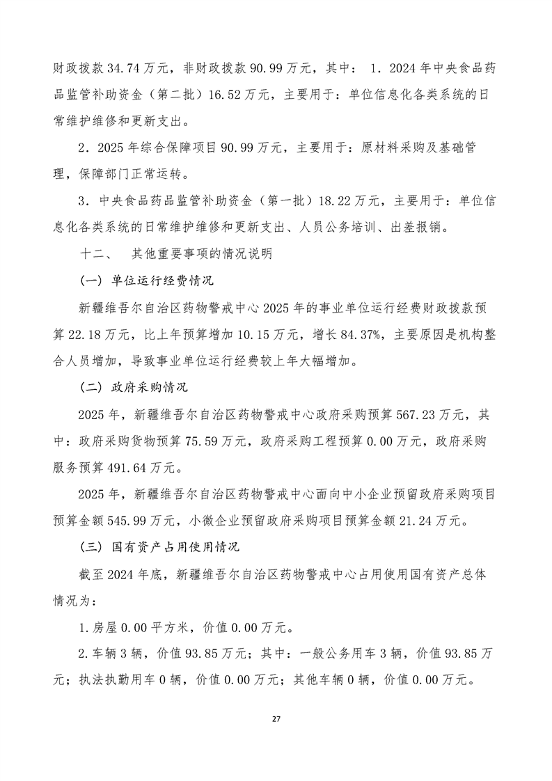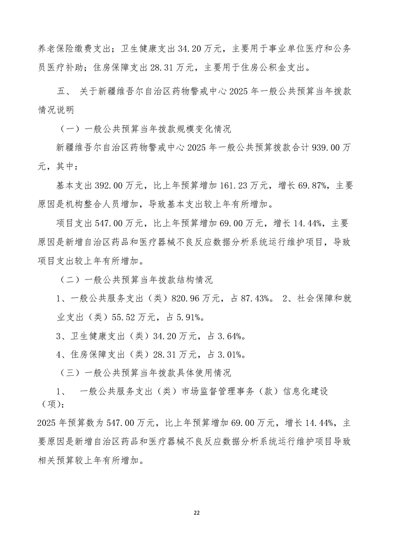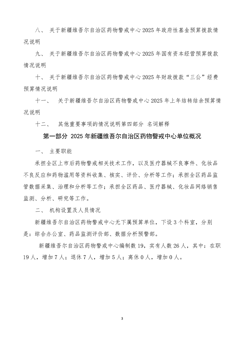 新疆维吾尔自治区药物警戒中心2025年单位预算公开