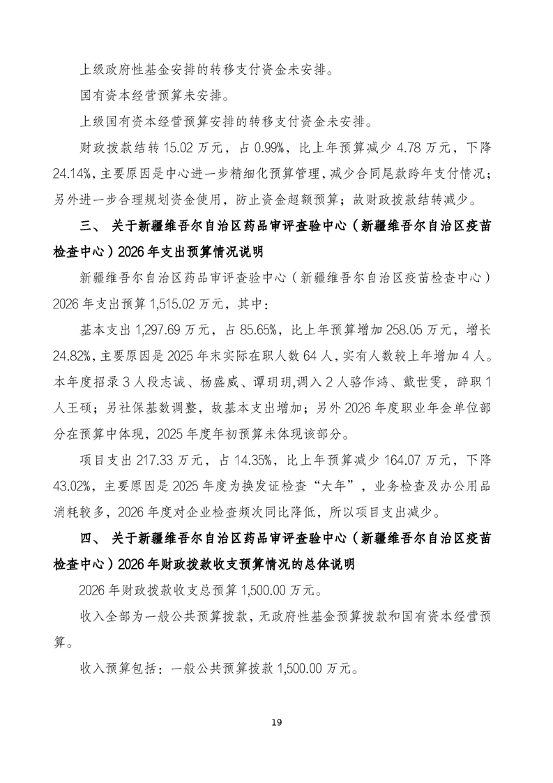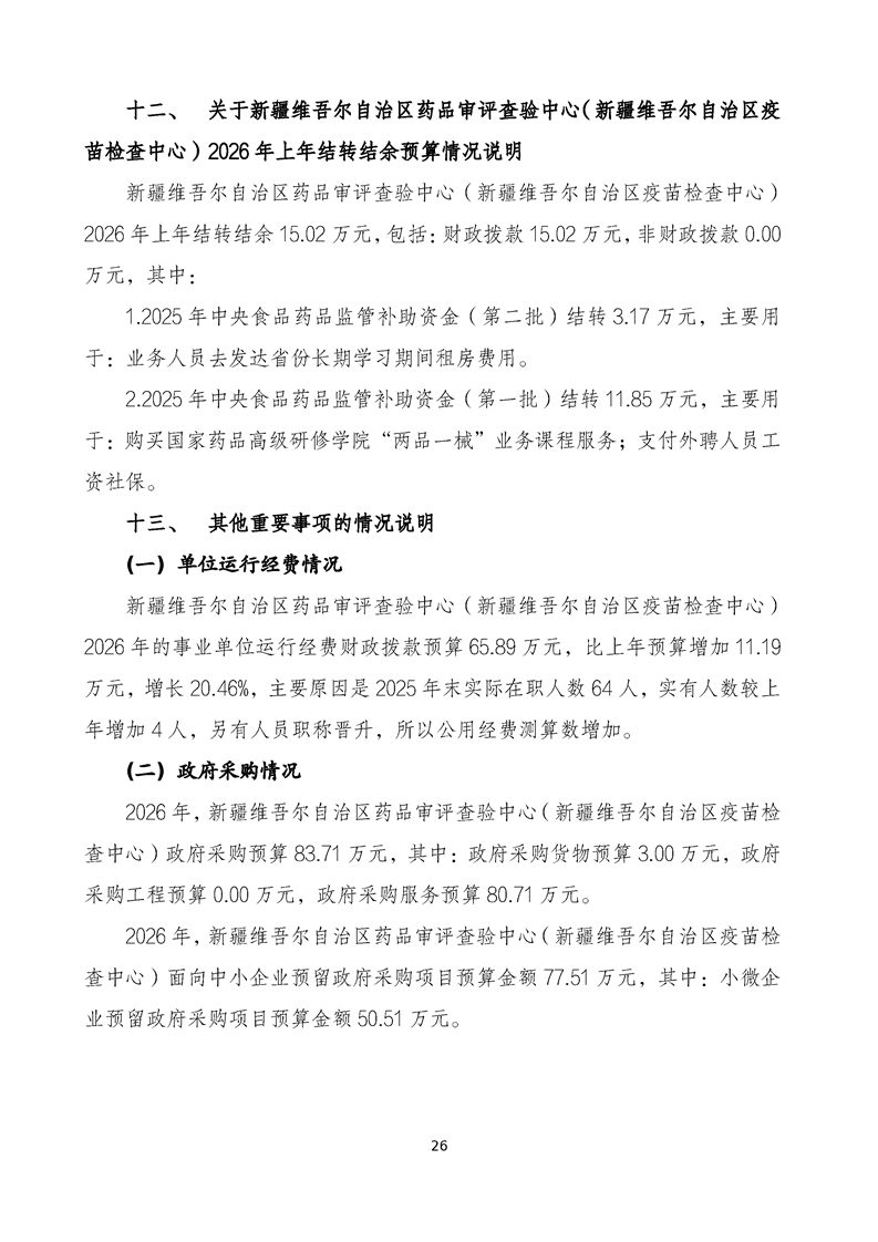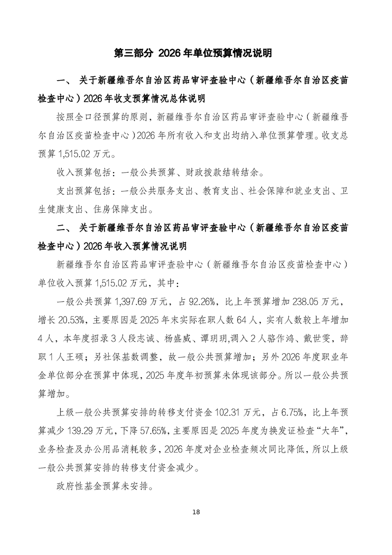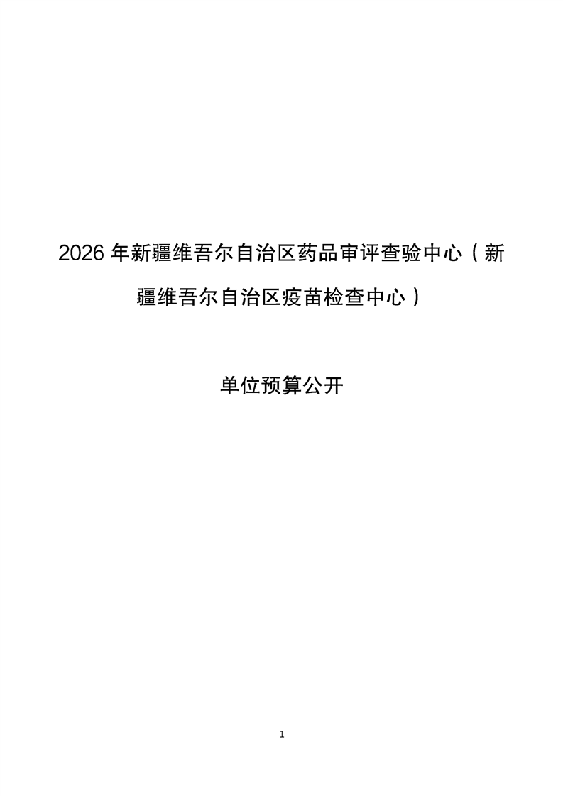 新疆维吾尔自治区药品审评查验中心(新疆维吾尔自治区疫苗检查中心)2026年单位预算公开