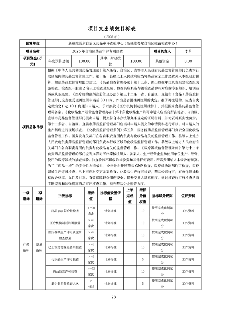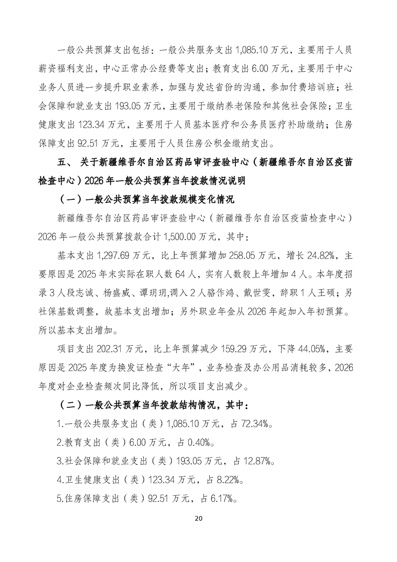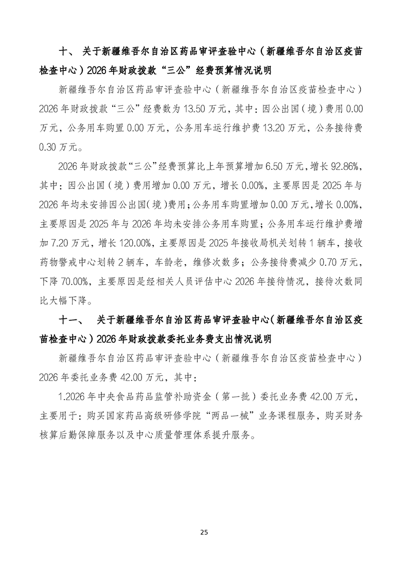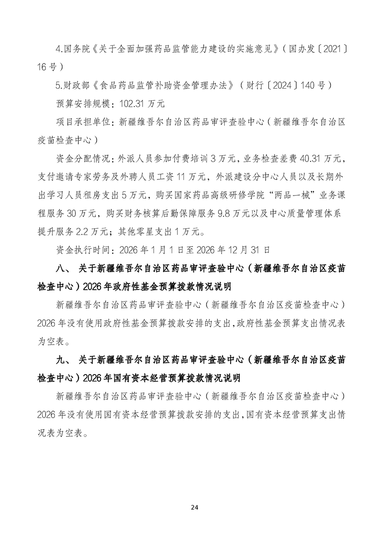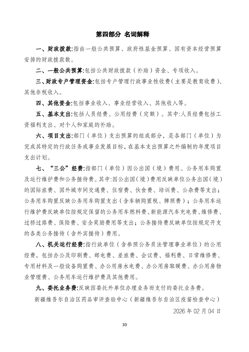 新疆维吾尔自治区药品审评查验中心(新疆维吾尔自治区疫苗检查中心)2026年单位预算公开